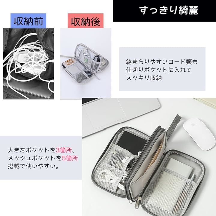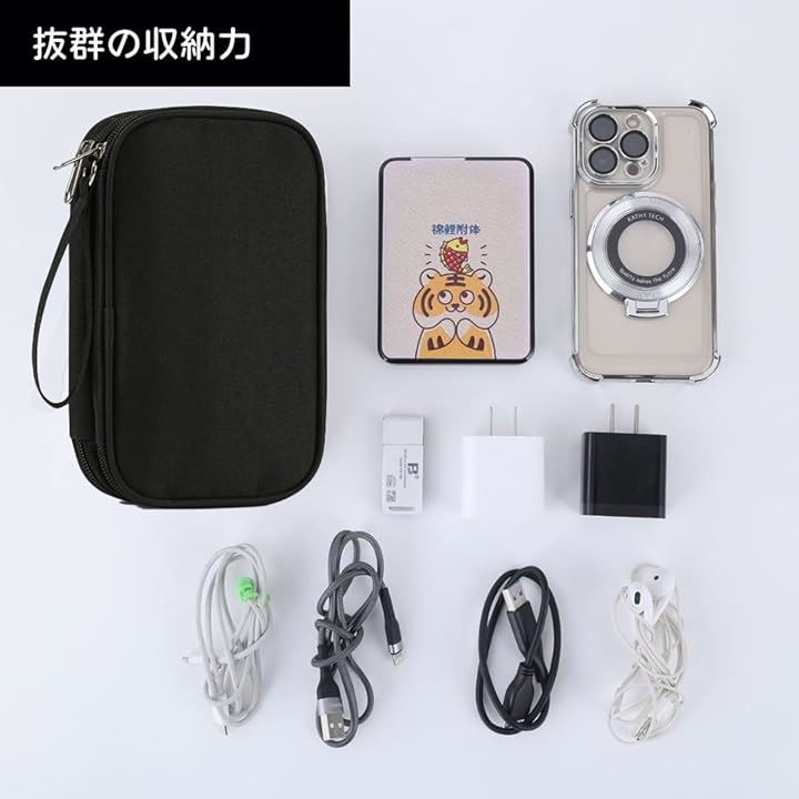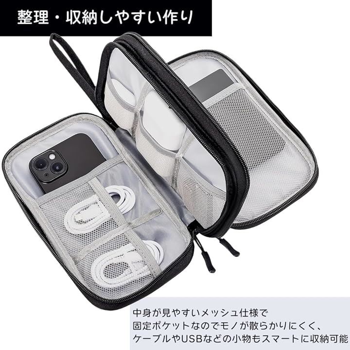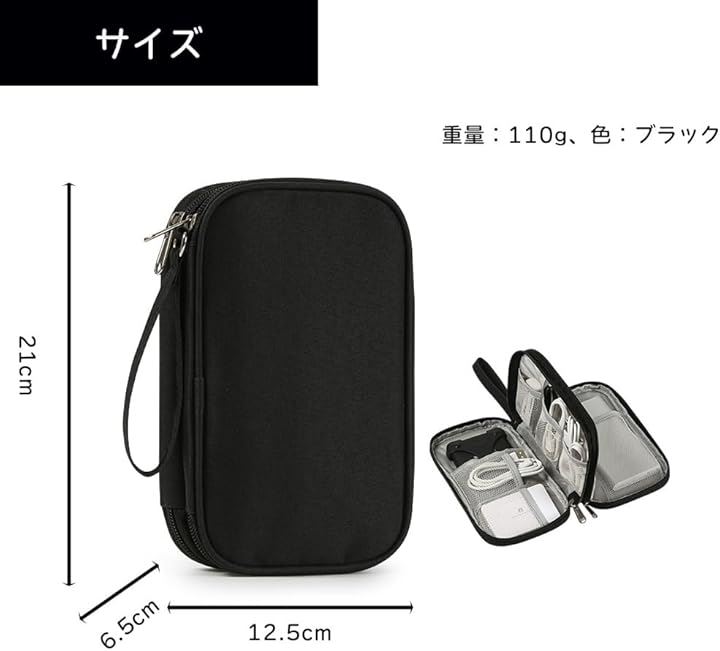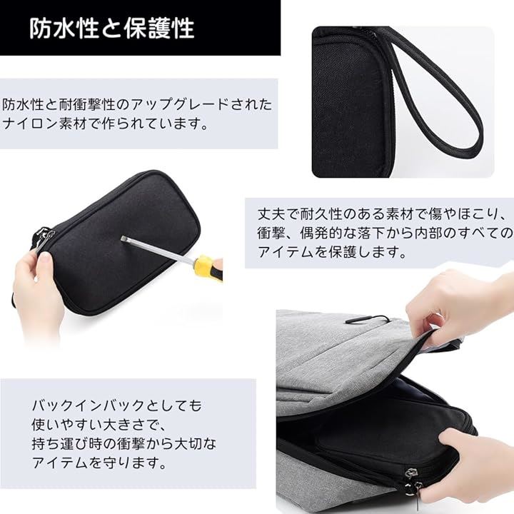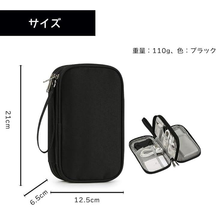 トラベルポーチ ガジェットポーチ ケーブル収納ポーチ 旅行 出張 小物入れ 軽量 ブラック