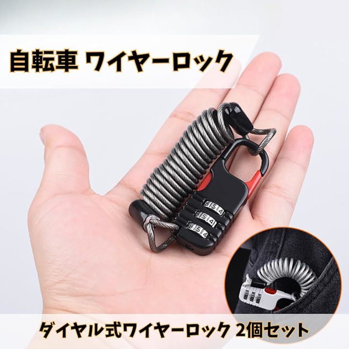 自転車 鍵 ダイヤル式 ワイヤーロック 南京錠 バイク ケーブル 旅行 防犯対策 2個セット