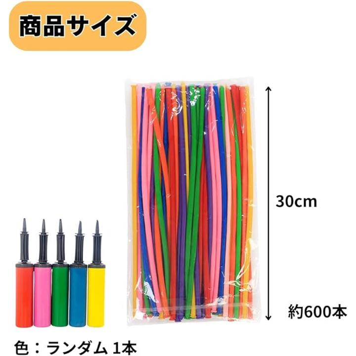 バルーンアート 風船 ツイストバルーン ロングサイズ イベント 景品 空気入れ付き 600本入り