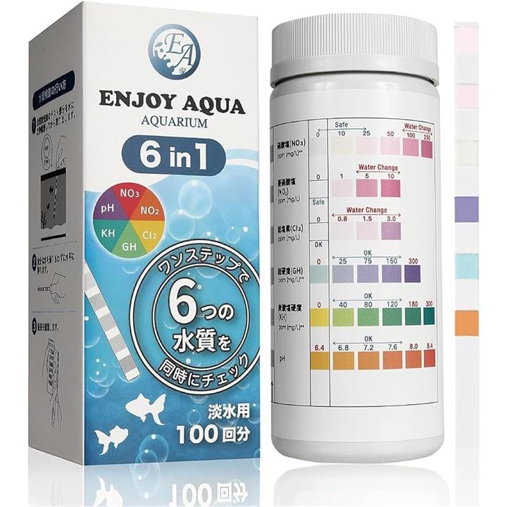 水質検査 アクアリウム 6in1 淡水用 100回分 説明書付き 金魚 メダカ 熱帯魚 ph 亜硝酸塩 炭酸塩 総硬度 塩素