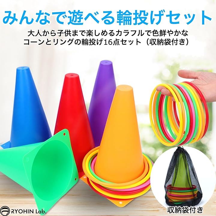 良品ラボ 輪投げセット 縁日 おもちゃ イベント レクリエーション 玩具 子供 景品 カラーコーン ゲーム 16個セット