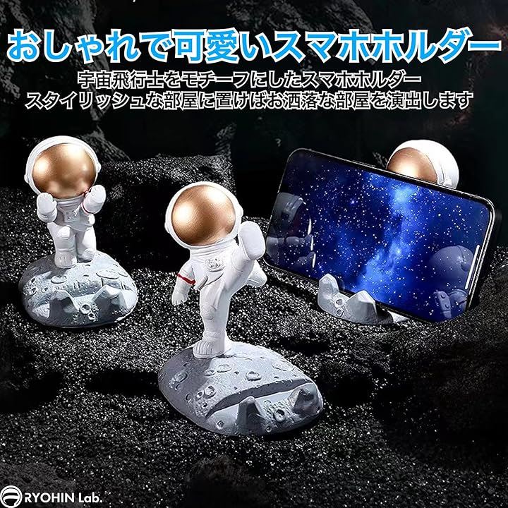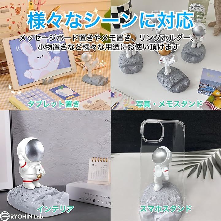 良品ラボ スマホ スタンド 卓上 宇宙飛行士 インテリア 置き物 おしゃれ かわいい 携帯 メモ iPad iPhone Android 1個