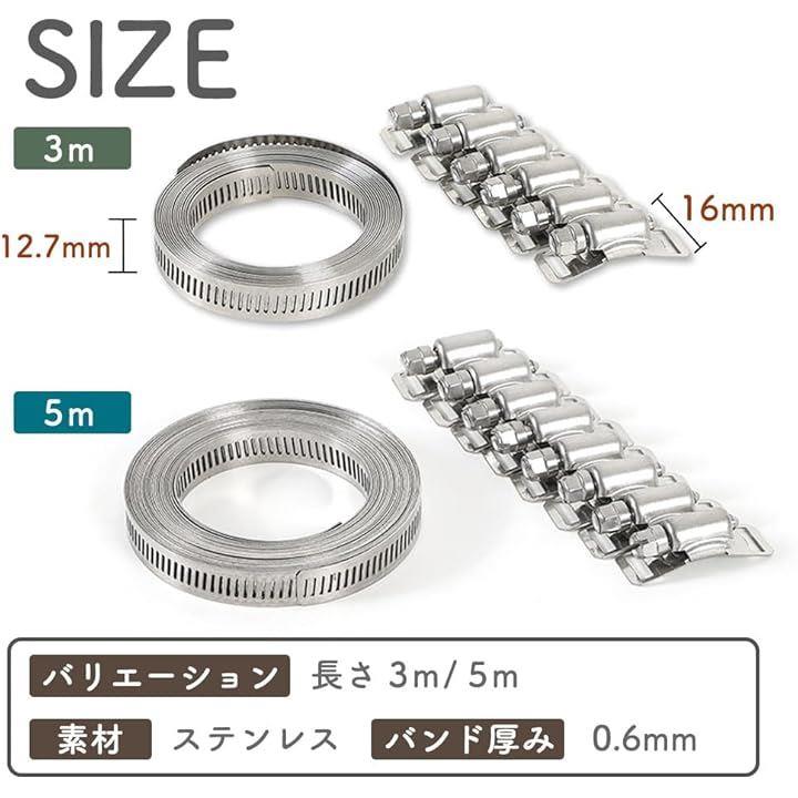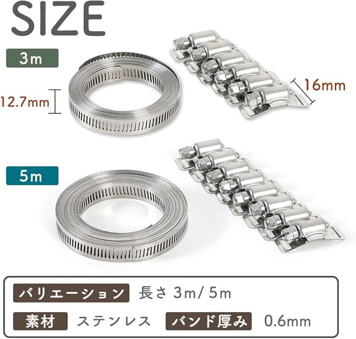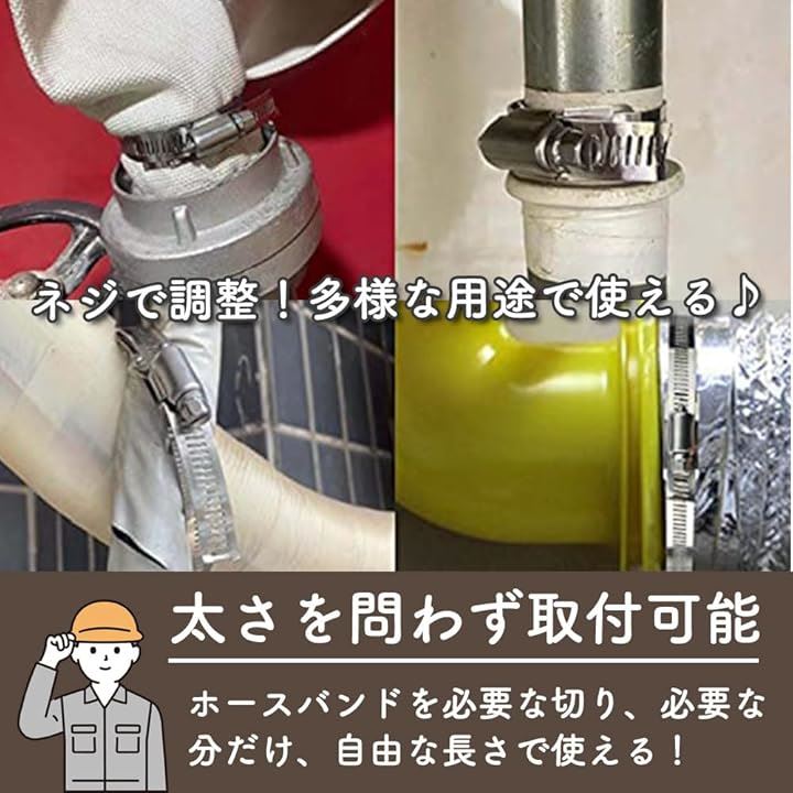 互換品 ホースバンド ステンレス クランプ 自在バンド ダクト 配管 屋内外用 長さ調整