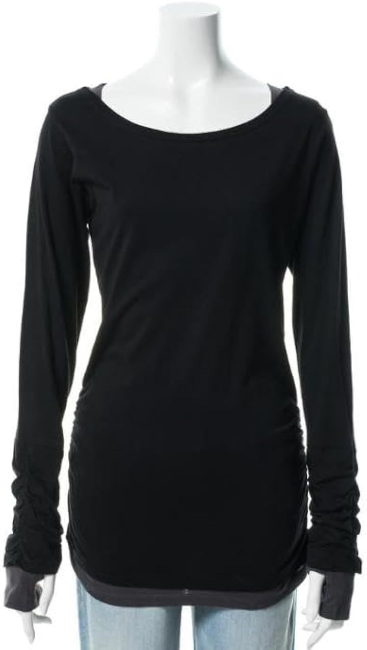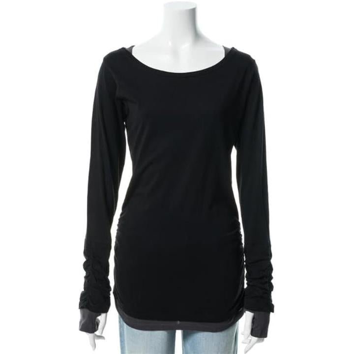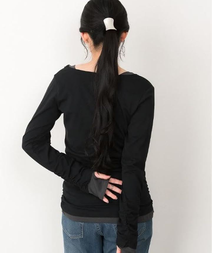 ゆる カットソー きれいめ 長袖 透けない (M) ブラック |