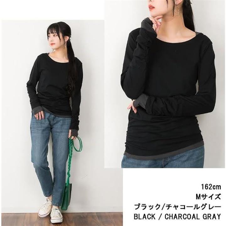 ゆる カットソー きれいめ 長袖 透けない (L) チャコール |