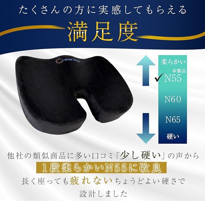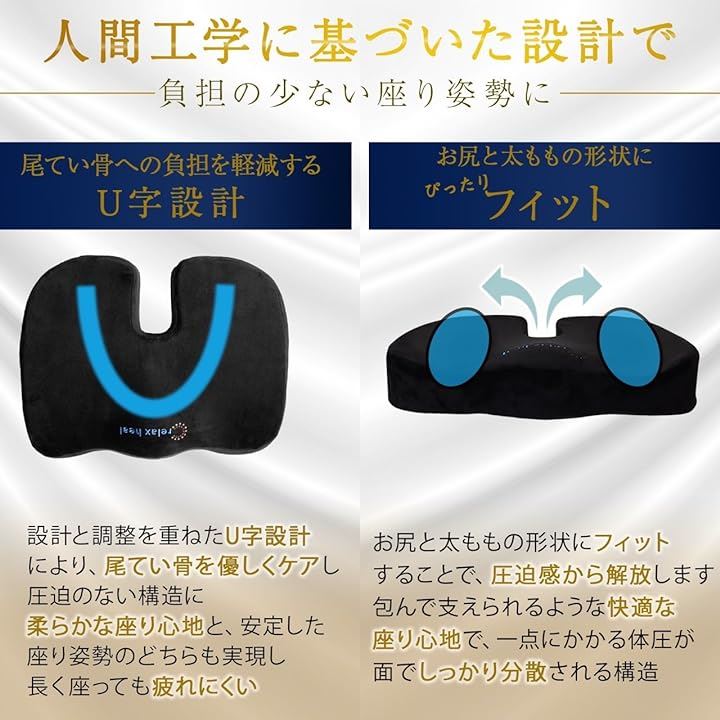 relaxheal 低反発クッション 座布団 椅子 シートクッション お尻が痛くならない 車 オフィス プレミアムメモリーフォーム
