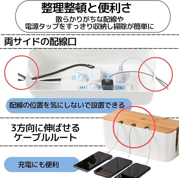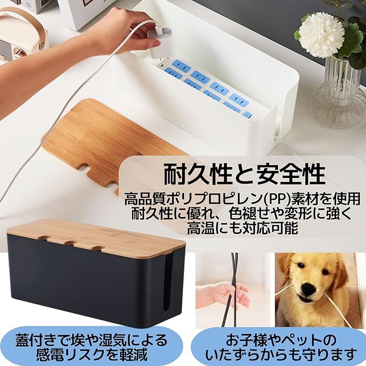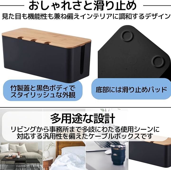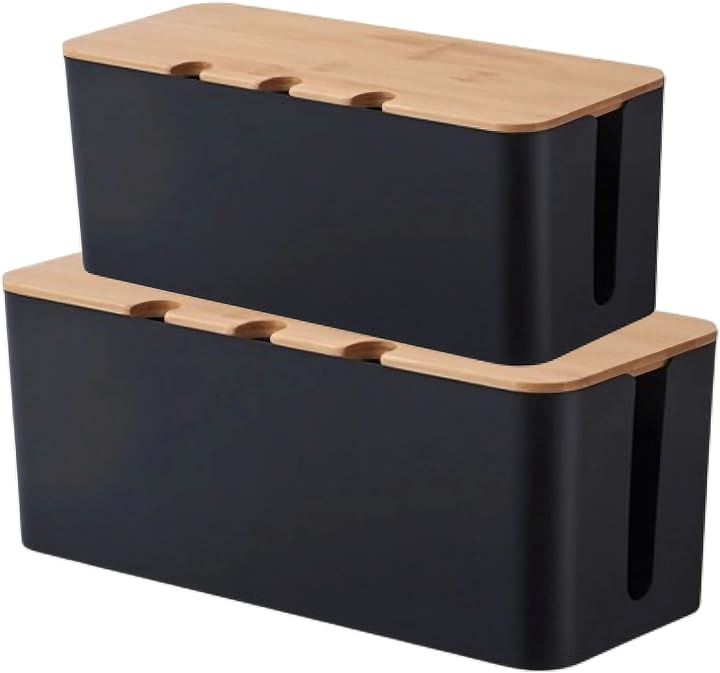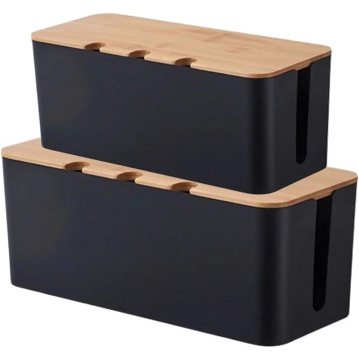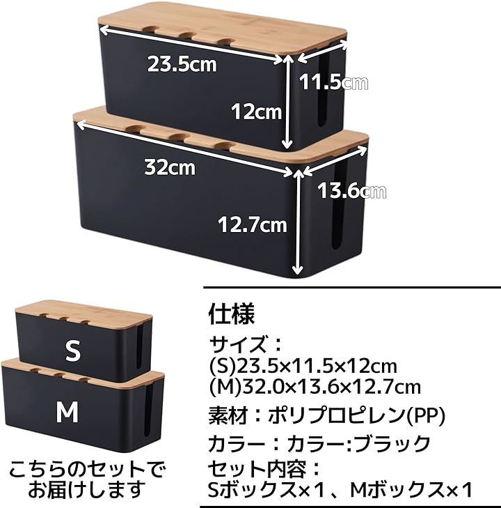 互換品ケーブルボックス 電源タップ コンセント 収納ボックス 配線隠し 2個セット ブラック S M