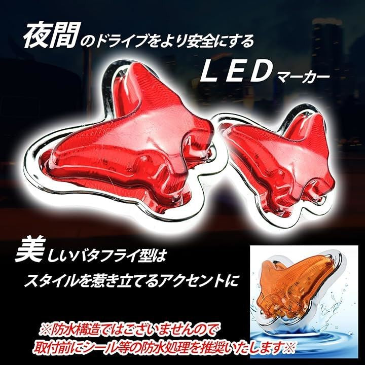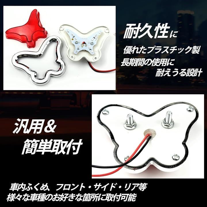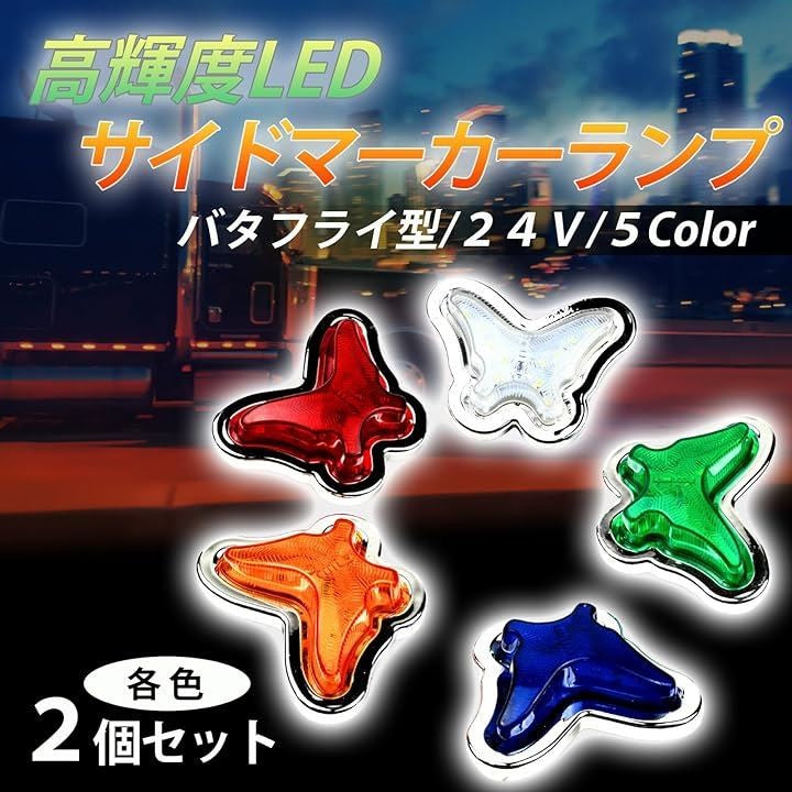 LED 24V ライト 蝶型 トラック用 デコパーツ イルミネーション 車両 電飾 アクセサリー 2個