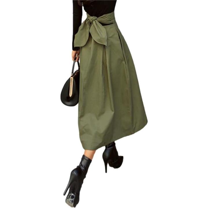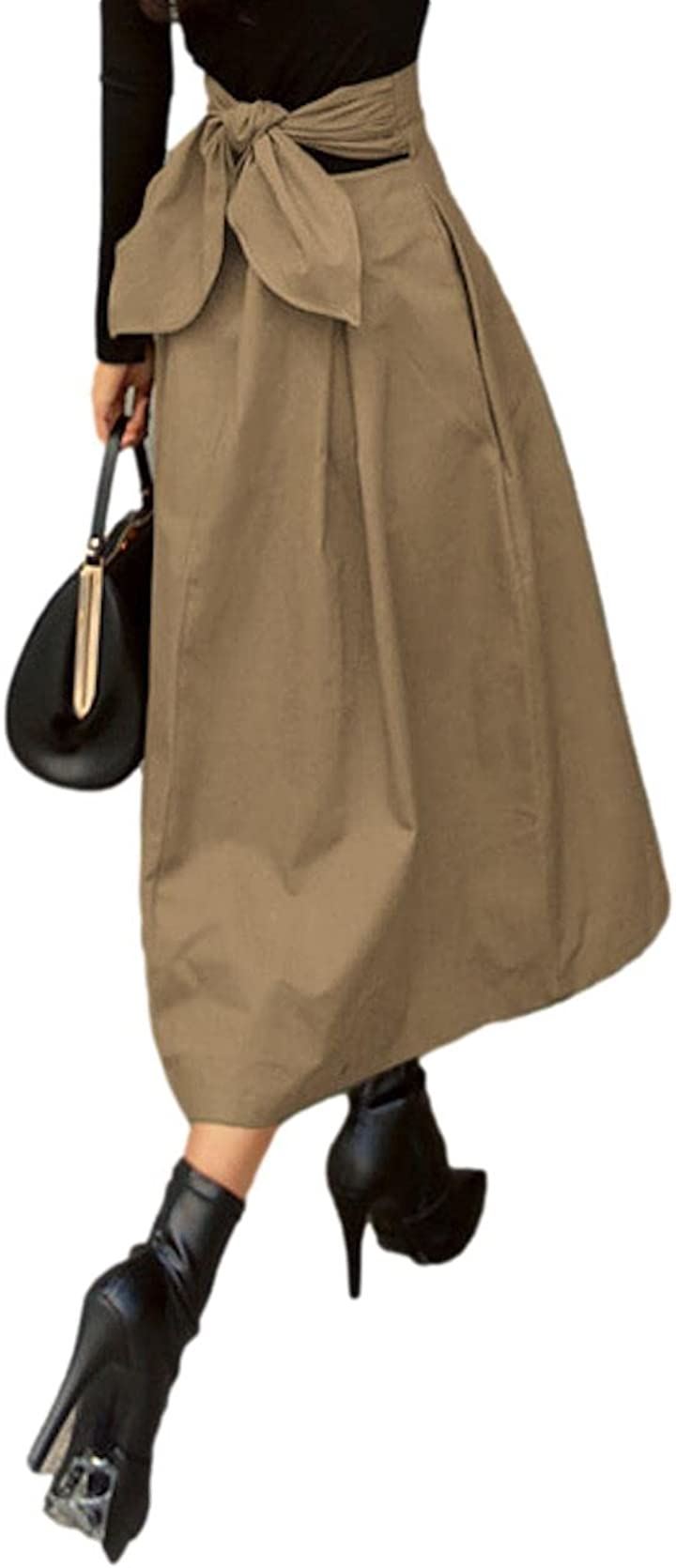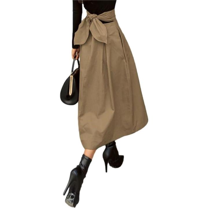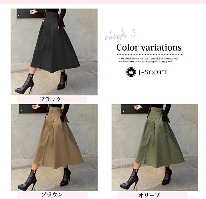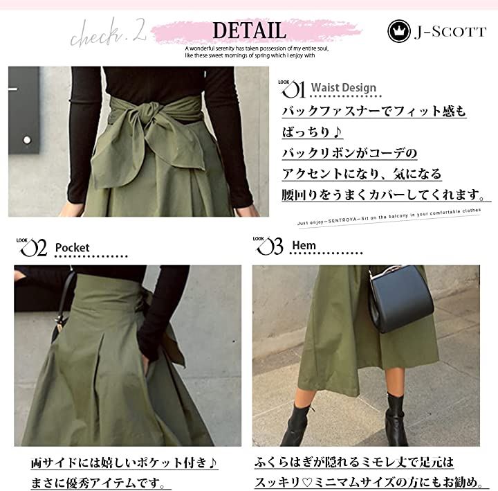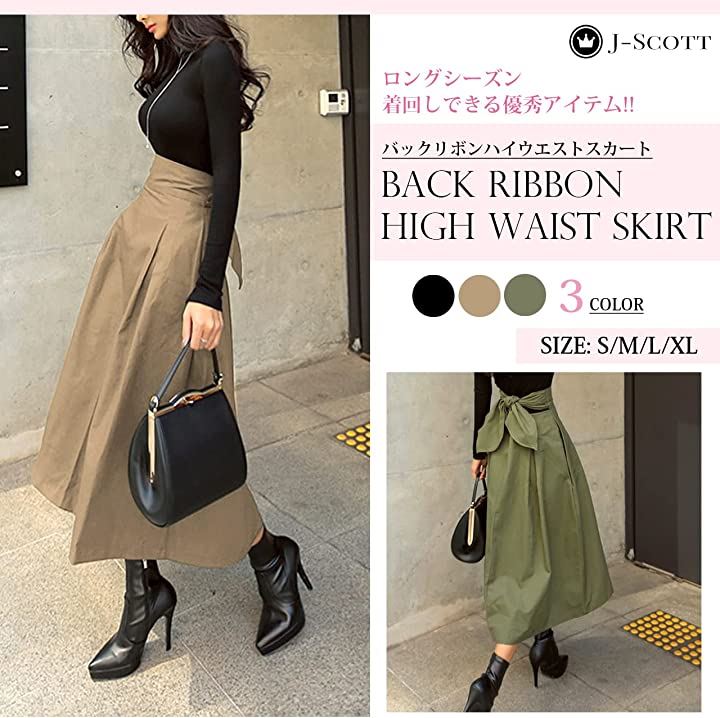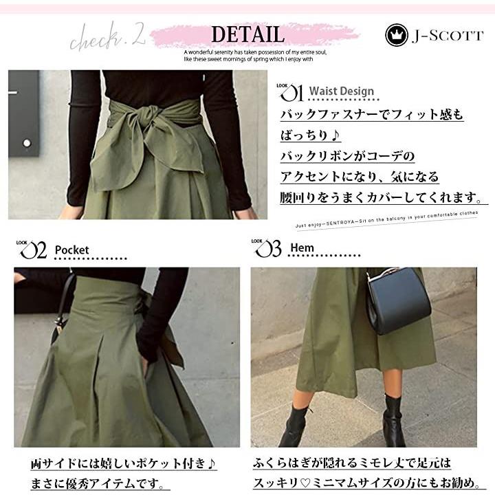 [J-Scott] ウエストリボンスカート レディース バックデザイン フレアシルエット ミモレ丈 ハイウエスト エレガント サイドポケット 韓国 レディースファッション トレンド びっくリボン リボンスカート JS02 |