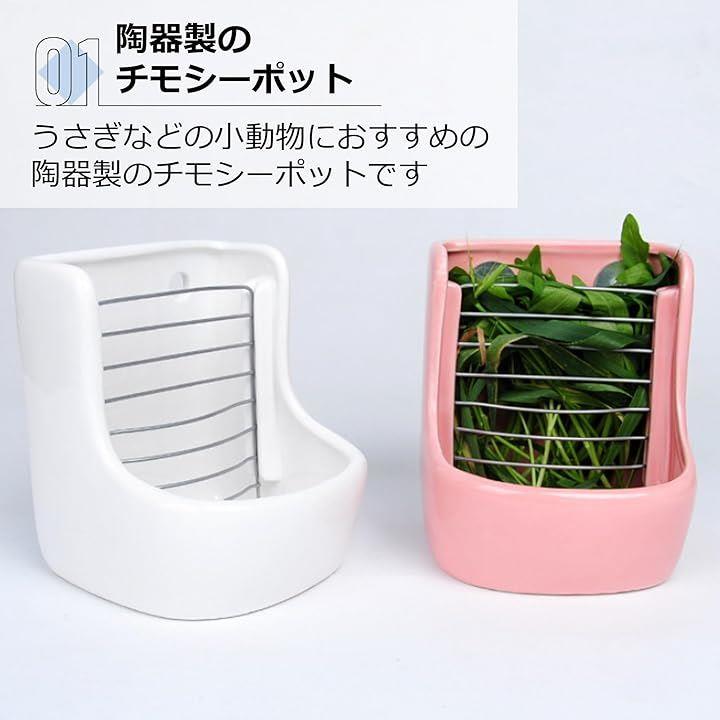 牧草ポット 陶器 ウサギ チモシー 餌入れ 小動物 食器 餌箱 フィーダー コーナー型 固定可能