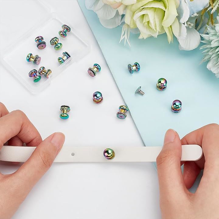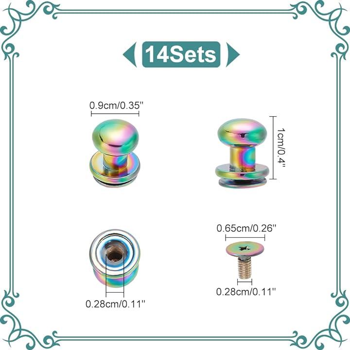 ラウンドデコレーションリベットスタッド 14 セット 9 ミリメートル レインボーシカゴネジ丸頭ボタン