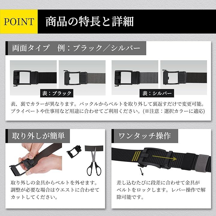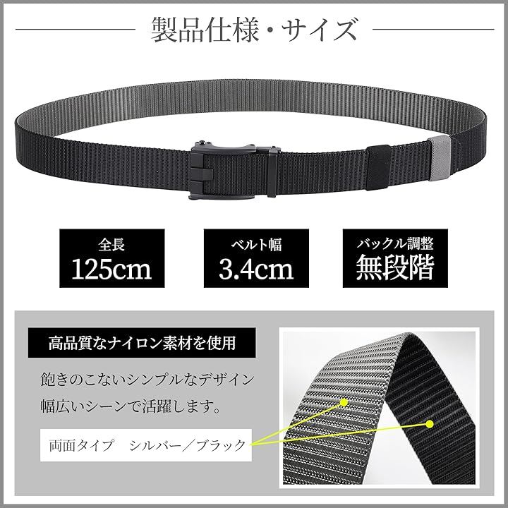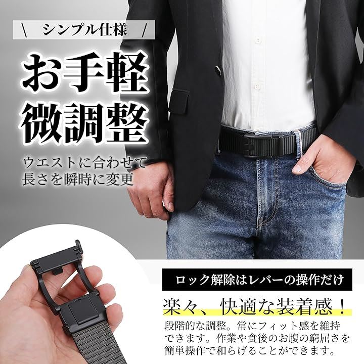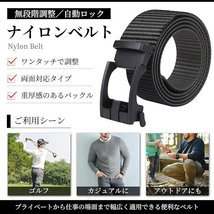 ナイロンベルト 作業用 オートロック 無段階調節 スライド式 メンズ