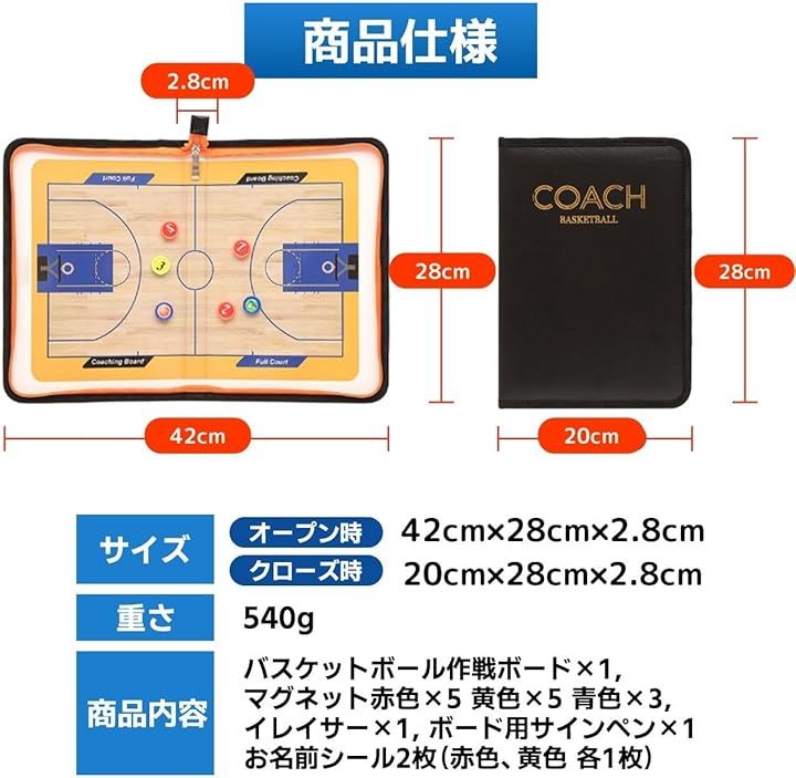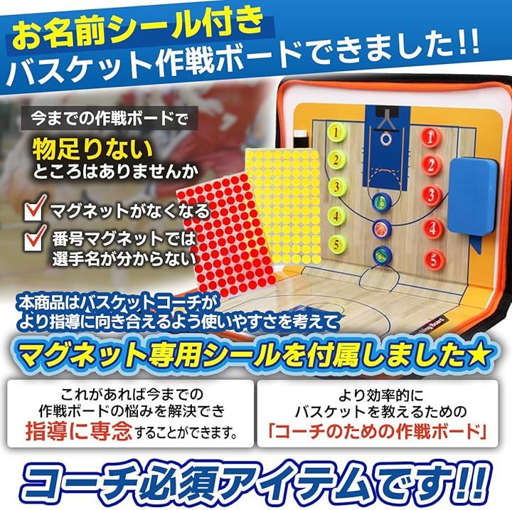 バスケットボール 作戦ボード 作戦板 作戦盤 戦術ボード チャック式 名前シール付 マグネット付 コーチングボード ストラップ