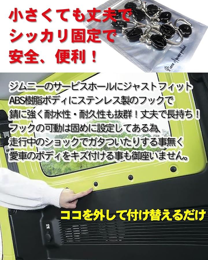 互換品フック 荷室 スズキ ジムニー ハスラー N-VAN フリード エブリィ 10個 セット