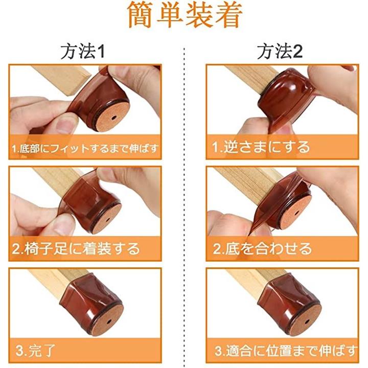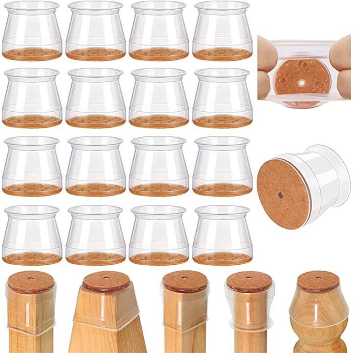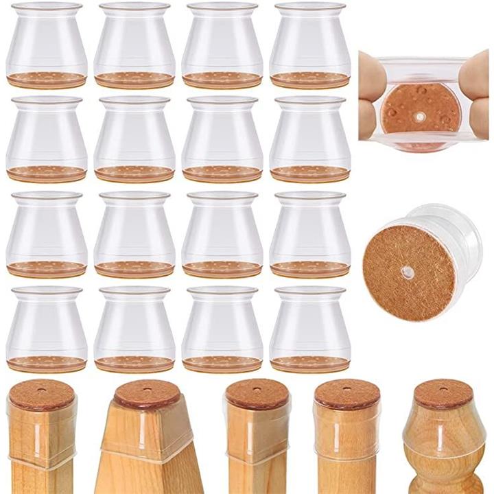 椅子脚カバー 椅子あしキャップ シリコン クリアー 騒音 きず防止 滑り止め レフィル付きフェルトシート 16個セット