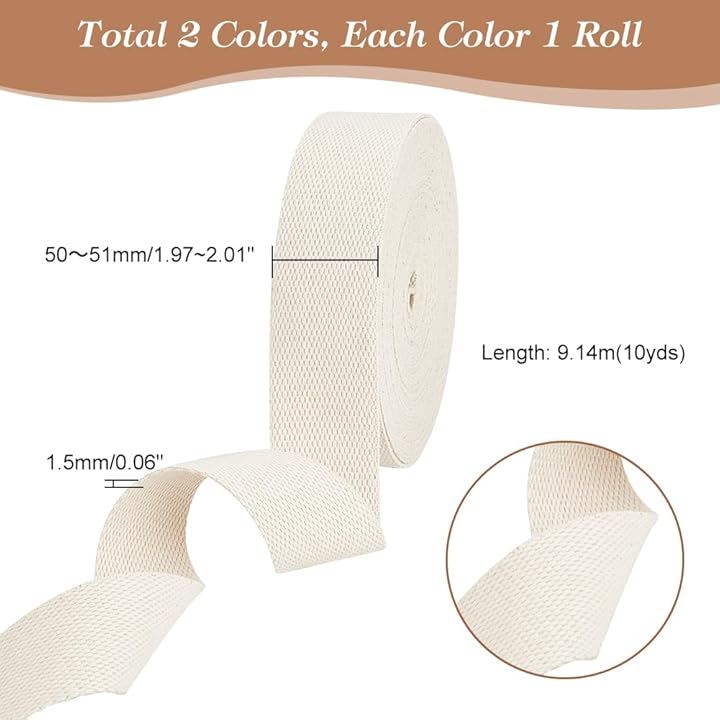 20ヤード ポリテープ カバンテープ ポリエステル ストラップ ハンドメイドバック用 2ロール ポリエステルテープ 50~51mm幅 カバン持ち手 バーテープ ベルト 手芸 アクセサリーパーツ