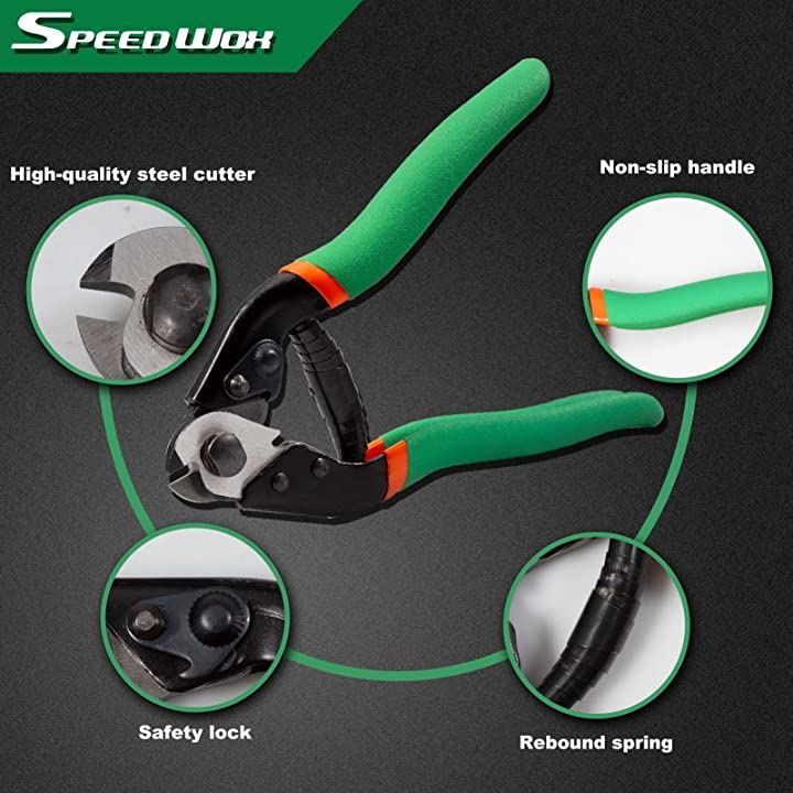 SPEEDWOX ワイヤーカッター 190mm ワイヤーロープカッター ロック機構 ブレーキワイヤーカッター 切断 鉄線 ケーブル線 DIY 工具 架線 通信工事