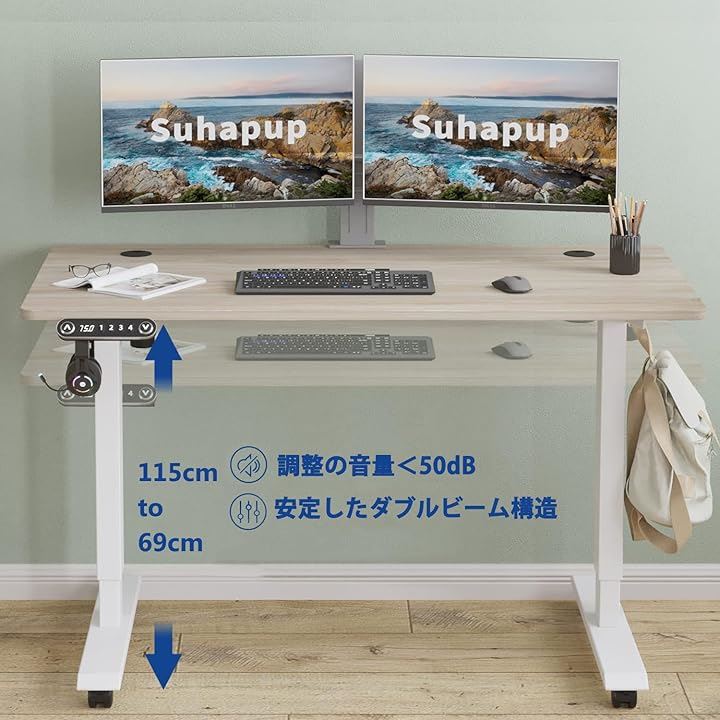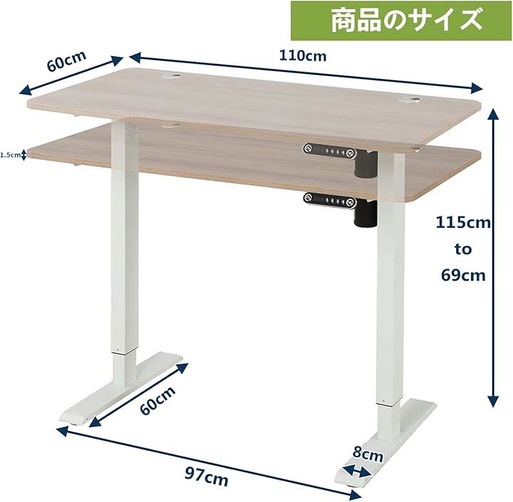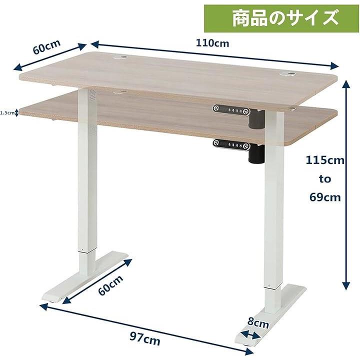 電動昇降デスク パソコンデスク 電動式机 スタンディングデスクつくえ 高さ調節メモリー機能付き 高さ調節可能 高さ69~115CM
