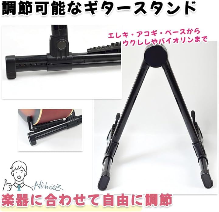 ギタースタンド 折りたたみ 持ち運び 軽量 コンパクト アコギ エレキ ウクレレ ベース 調節可能