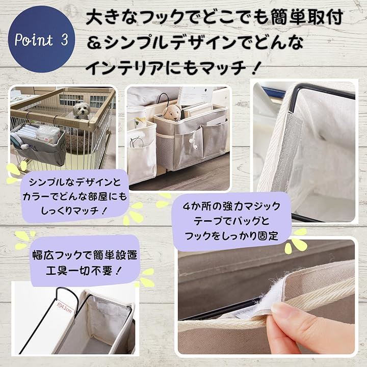 ペット用品 収納バッグ オムツストッカー ベッドサイド・ケージ対応 犬猫用 吊り下げ式ポケット