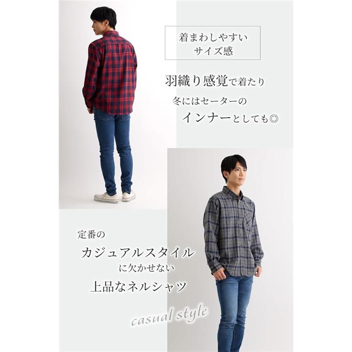 ヴァレリア ネルシャツ メンズ 長袖 カジュアル チェック 柄