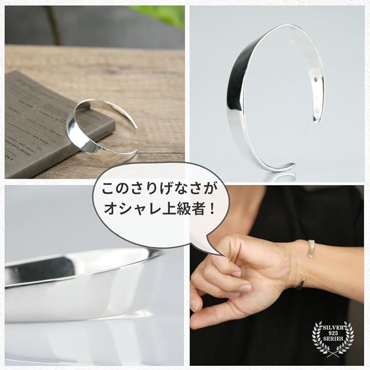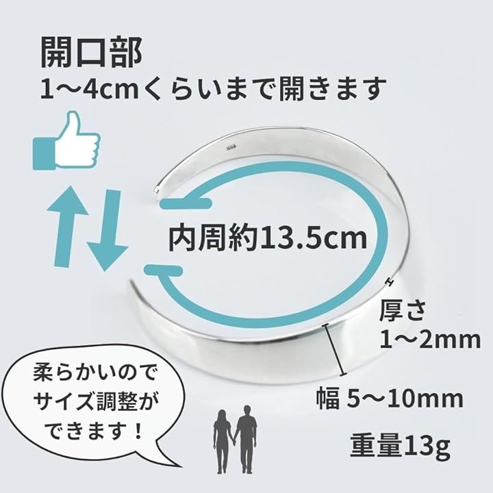 メンズ バングル シルバー ブレスレット 925 シンプル 銀 プレーン サイズ調節可 レディース