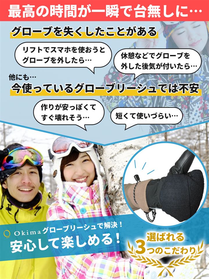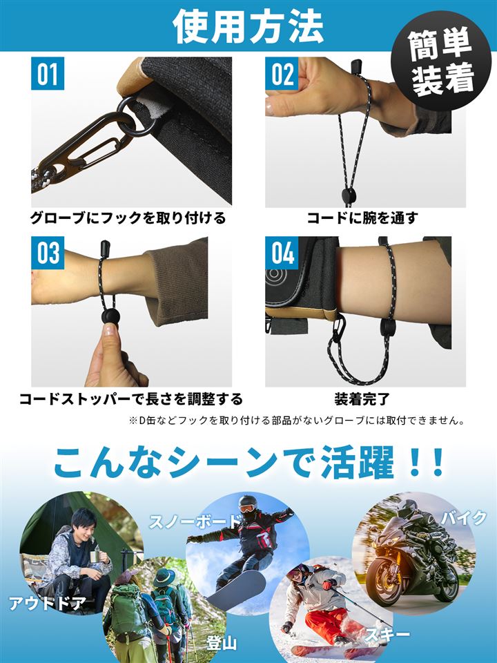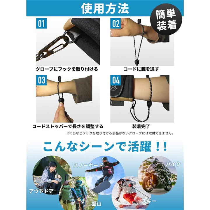グローブリーシュ リーシュコード グローブカフ スノボ スノーボード スキー 手袋リーシュ 紐 落下防止 紛失防止 流れ止め