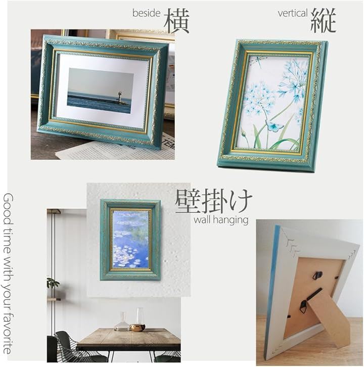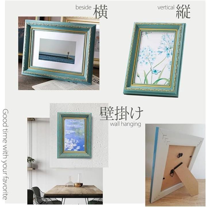 写真立て おしゃれ L判 2l ハガキ アンティーク ヴィンテージ風 樹脂製 壁掛け 卓上 置き掛け兼用 縦横兼用 フォトフレーム 額縁