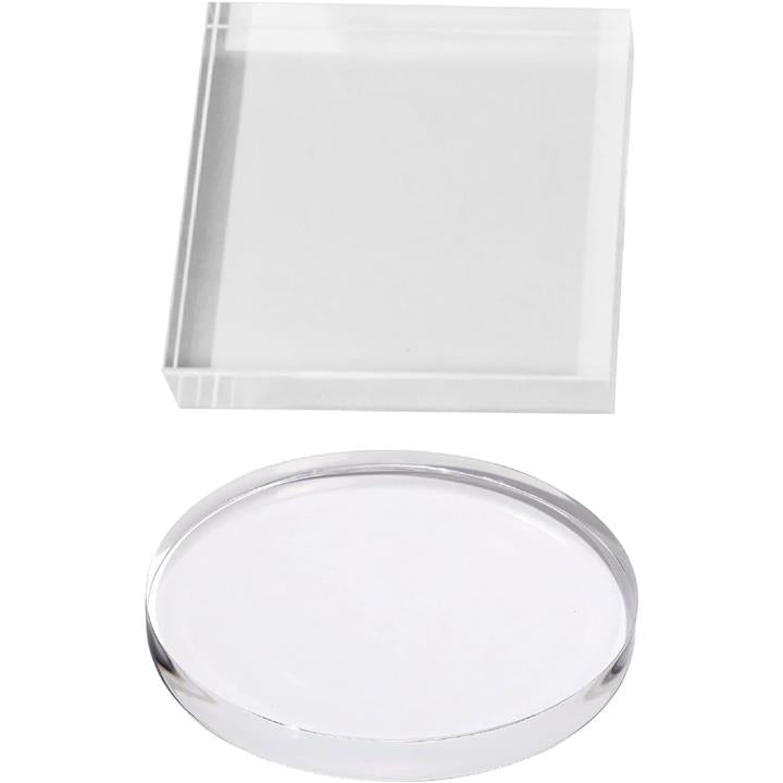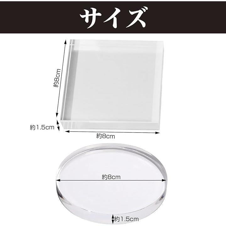 互換品アクリル ディスプレイ インテリア パネル 透明 フィギュア 展示 四角8cmx1個+円形8cmx1個
