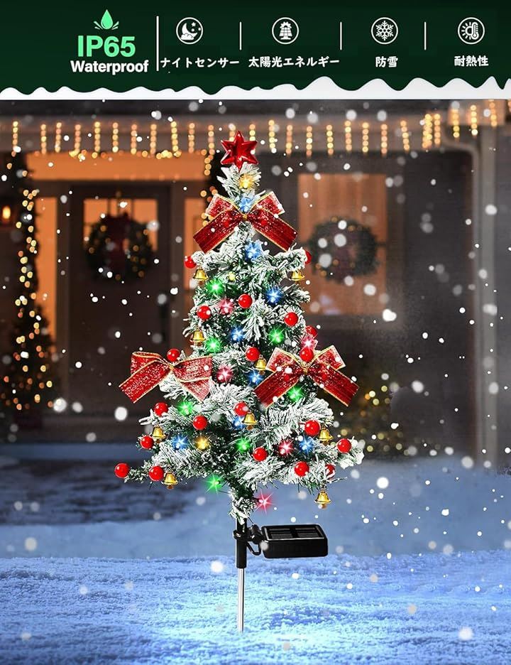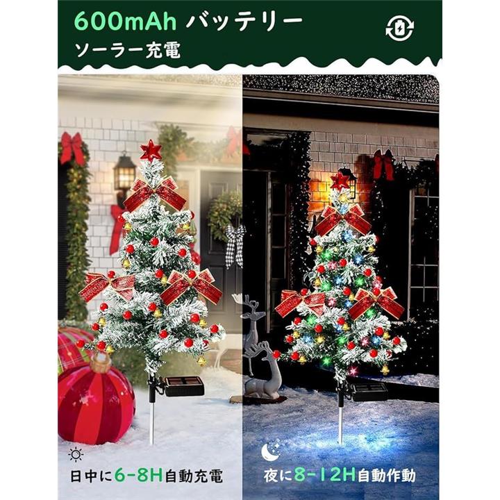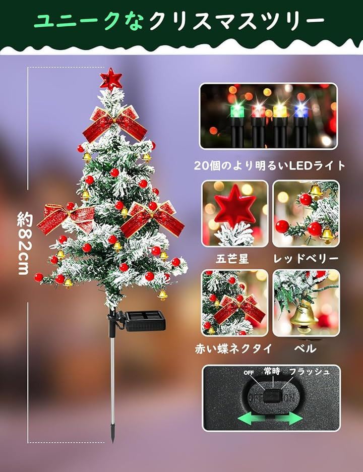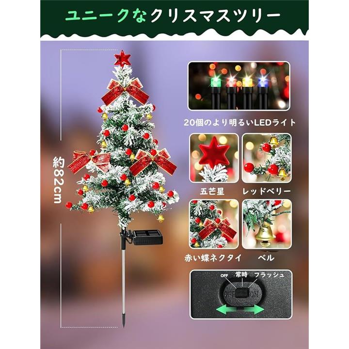 ソーラーライト クリスマスツリー イルミネーションライト 置物ライト 屋外 ガーデンライト 常時&点滅モード 埋め込み 飾り付けライト クリスマス飾り 自動点灯