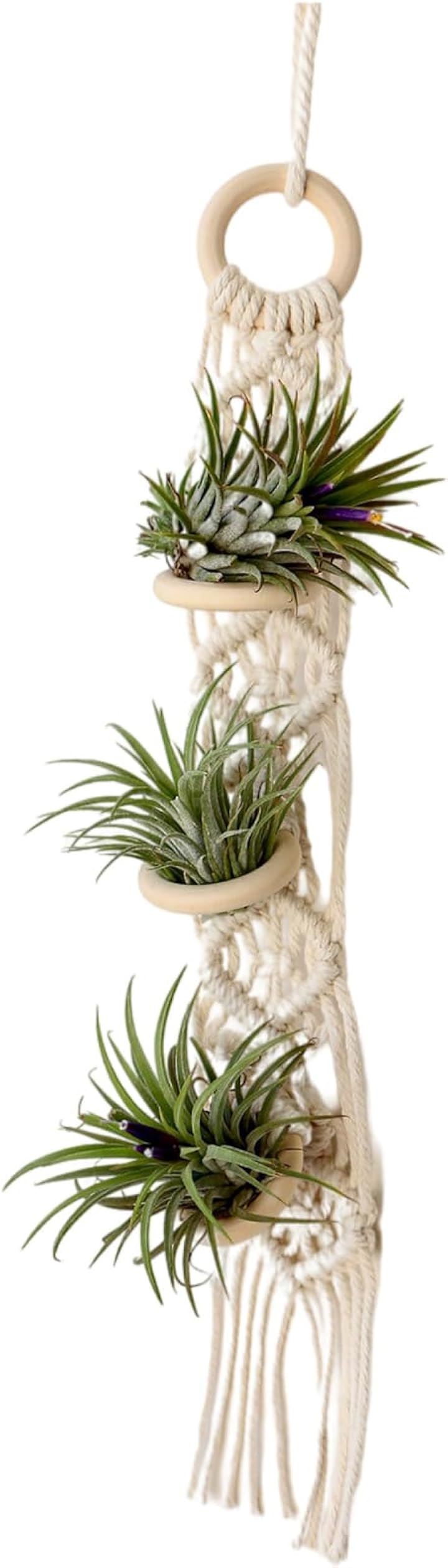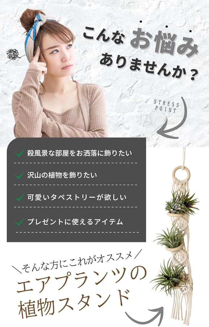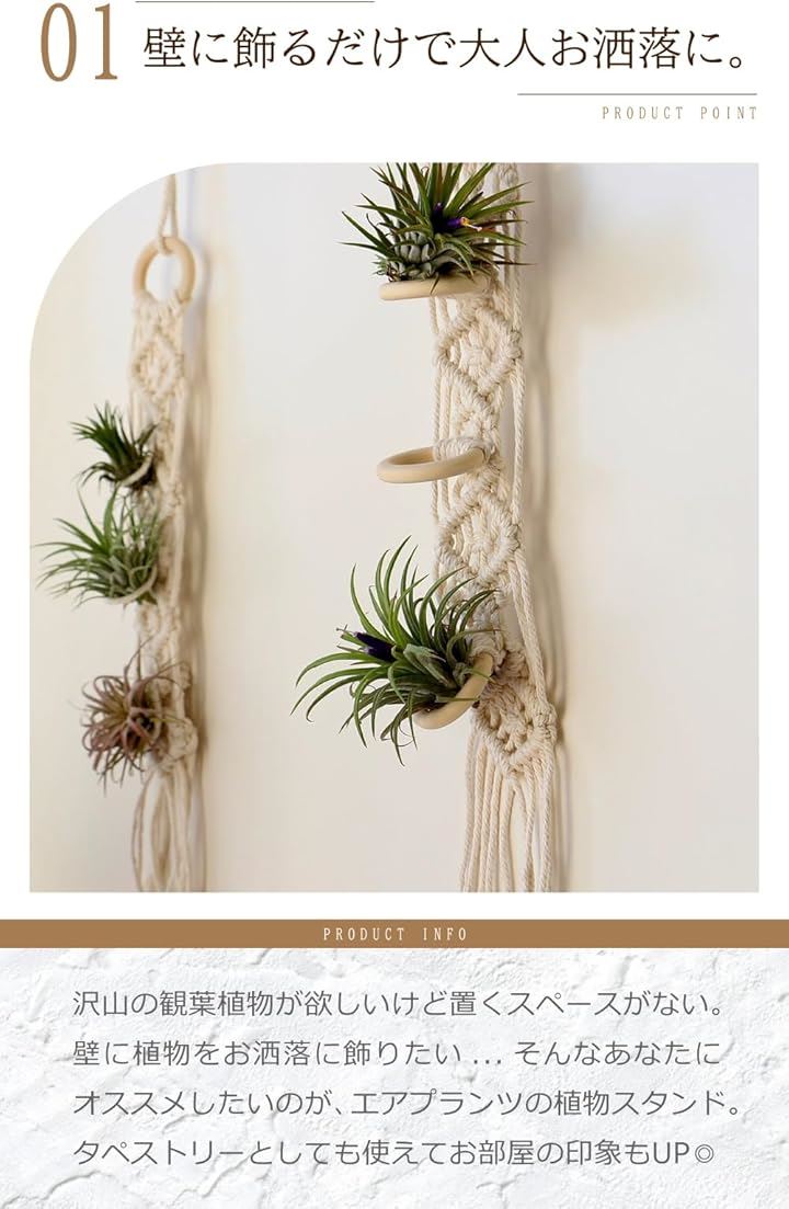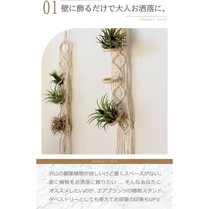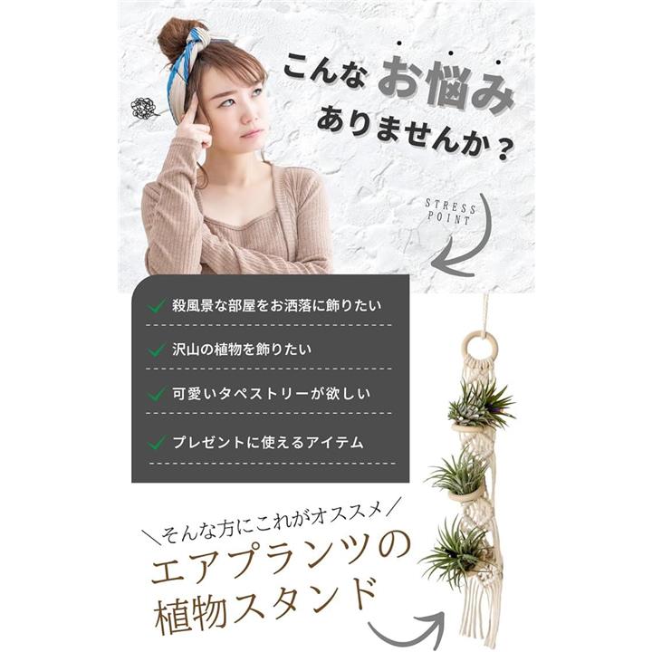エアープランツ プランタースタンド 吊るす マクラメ フラワースタンド チランジア ティランジア 屋内 観葉植物