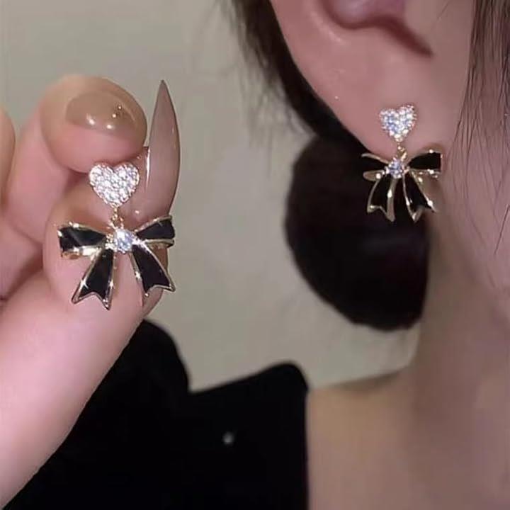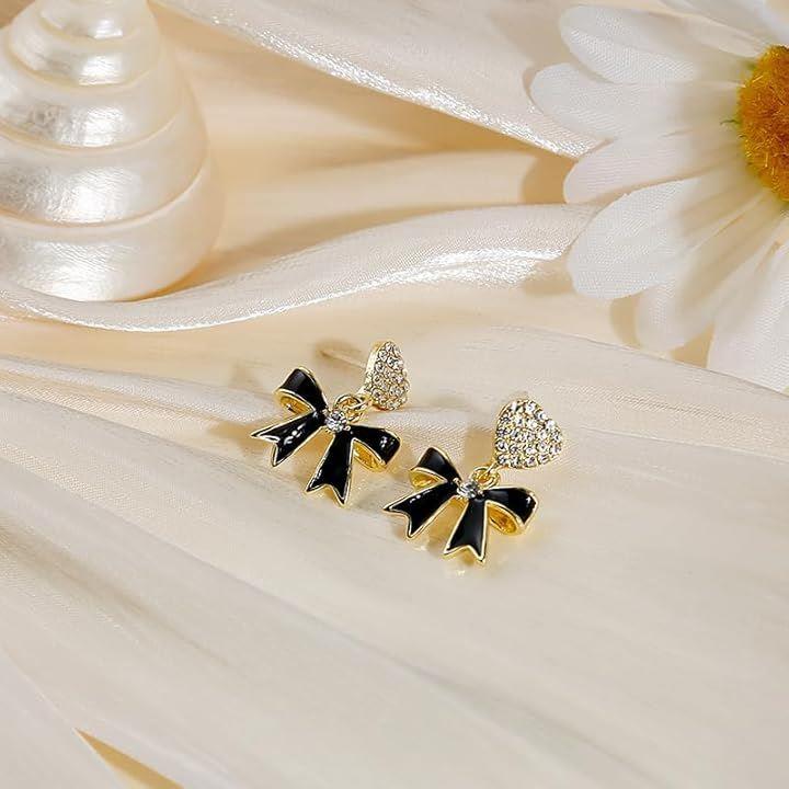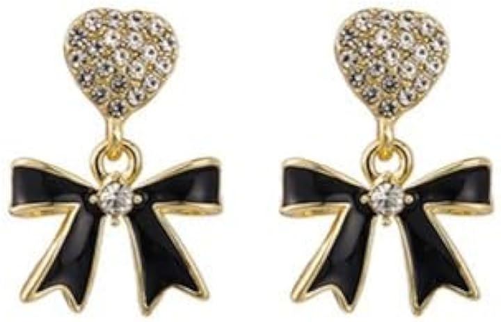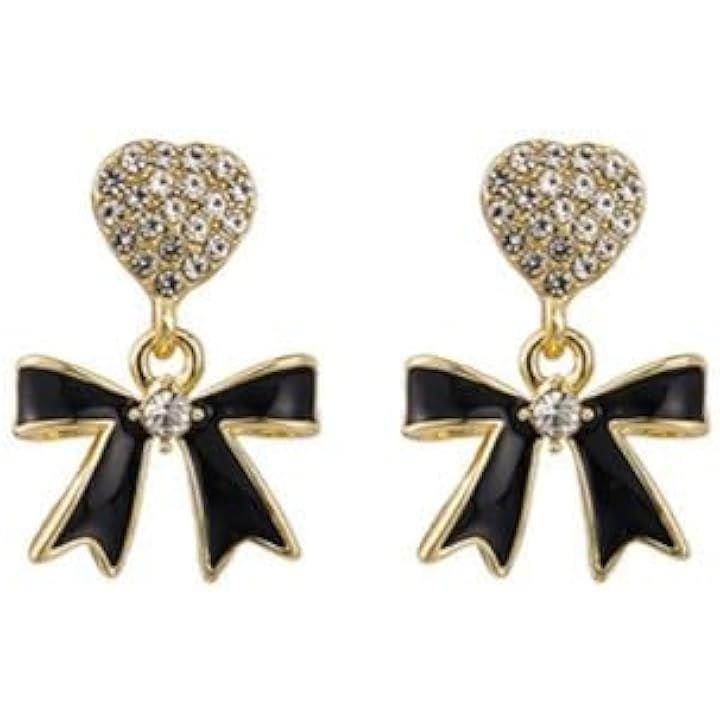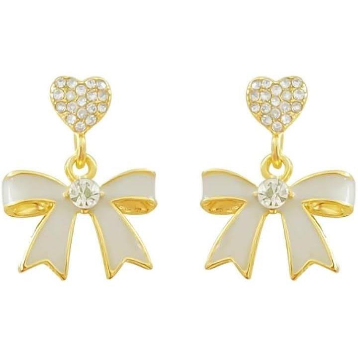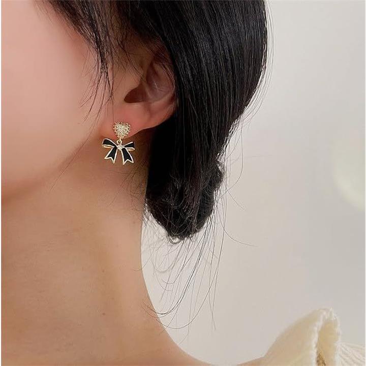ピアス リボン 結び ハート CZ ダイヤ 垂れ下がり 人気 レディース 両耳用2つ入り