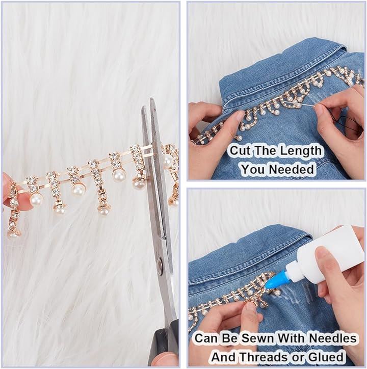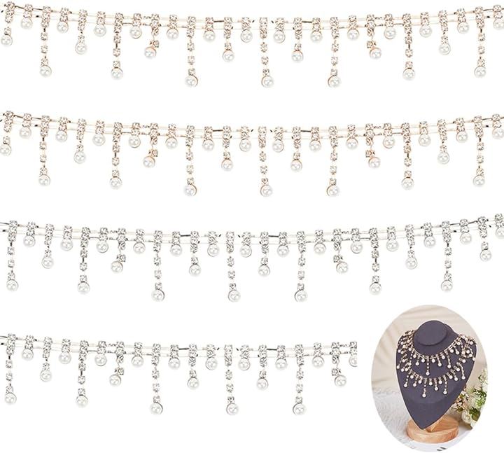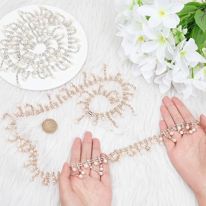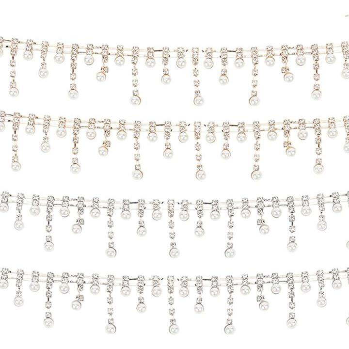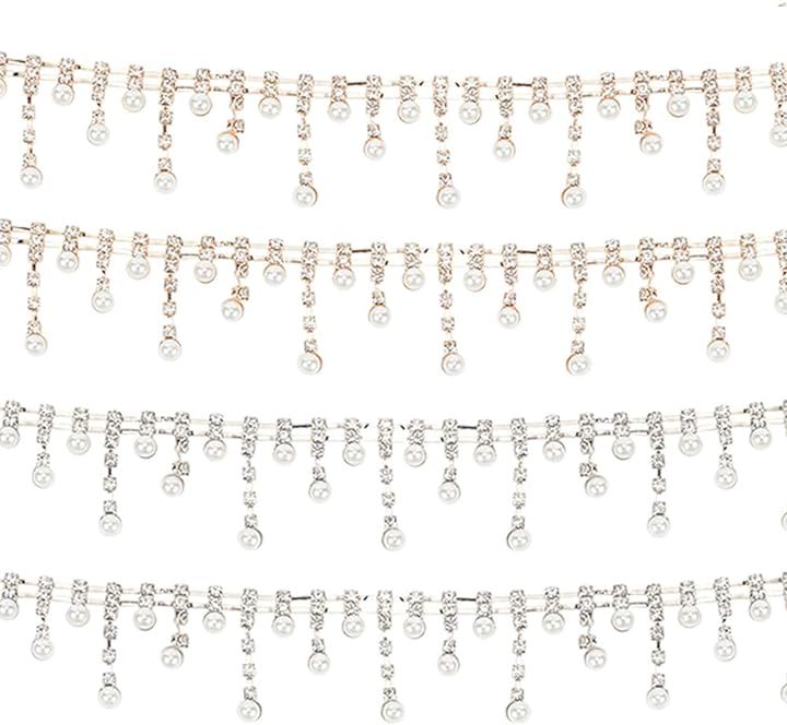ラインストーン ビーズ トリム リボン クリスタルフリンジトリムチェーン模造パールビーズタッセル装飾チェーンダイヤモンドクリスタル装飾トリムウェディングパーティークリスマスツリー