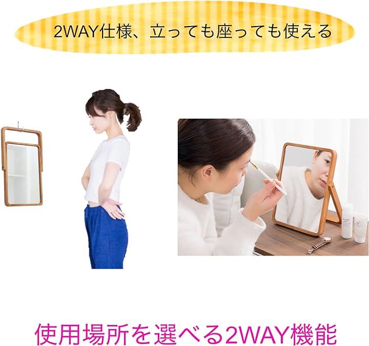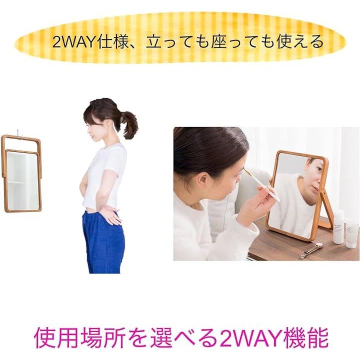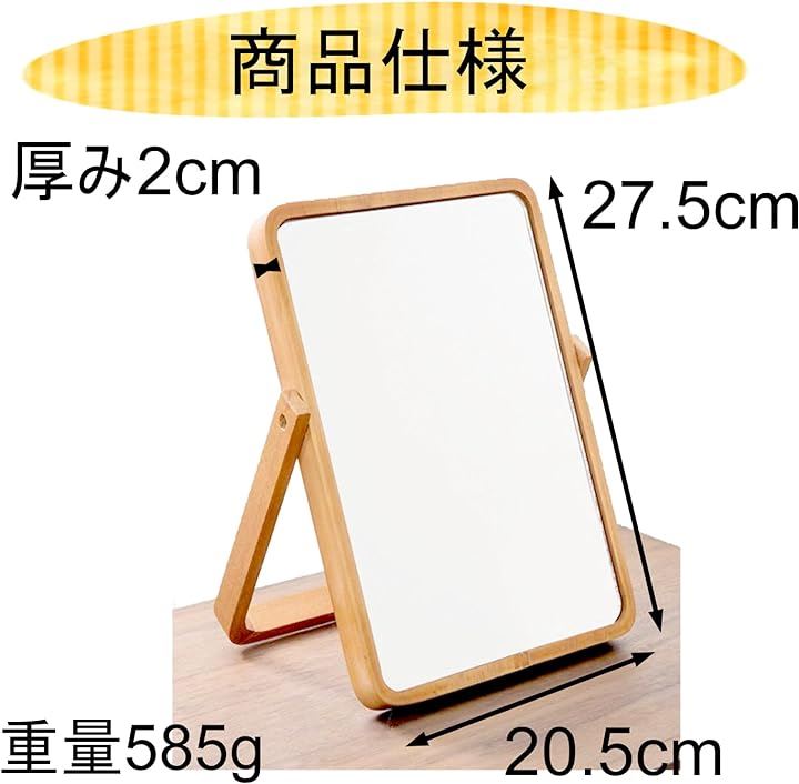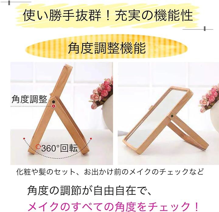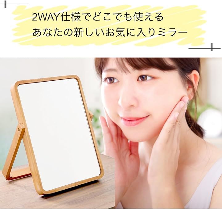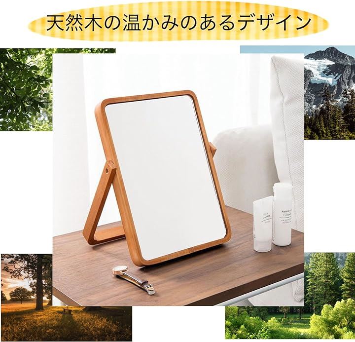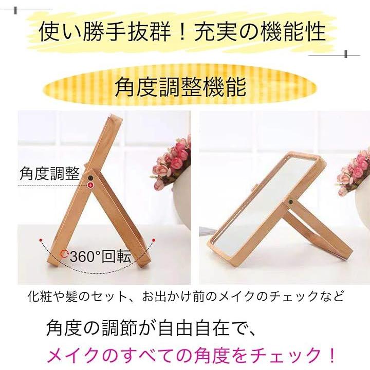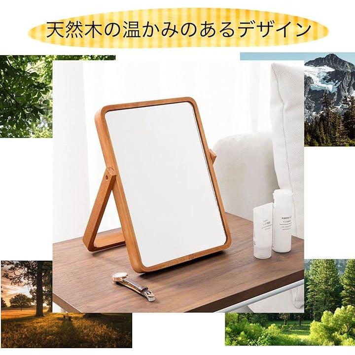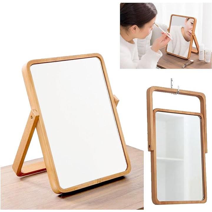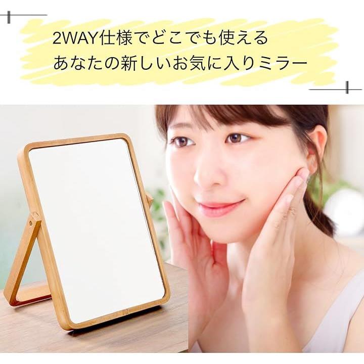 卓上ミラー スタンドミラー 鏡 壁掛け 木製 四角