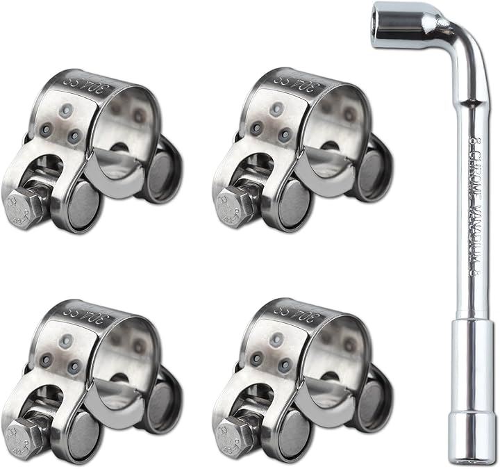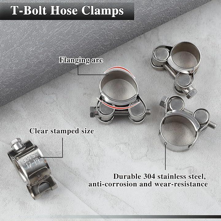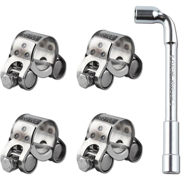 Tボルトホースクランプ Tボルトクランプ ホースクランププライヤー ホースバンド 燃料ホースクランプ フラットホースバンド ホースクリップ マフラーバンド マフラークランプ L型ソケットレンチ L型レンチ アングルソケットレンチ L字型ソケットレンチ 4個入り