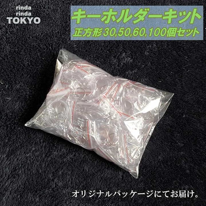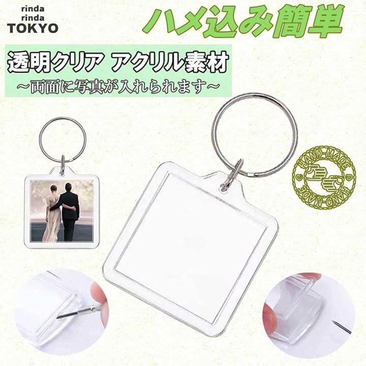 rinda キーホルダー 写真 入れ 正方形 30個 50個 60個 100個 カットテンプレート 台紙付 アクリル フォト フレーム ハンドメイド 手作り パーツ ハメパチ 作成キット