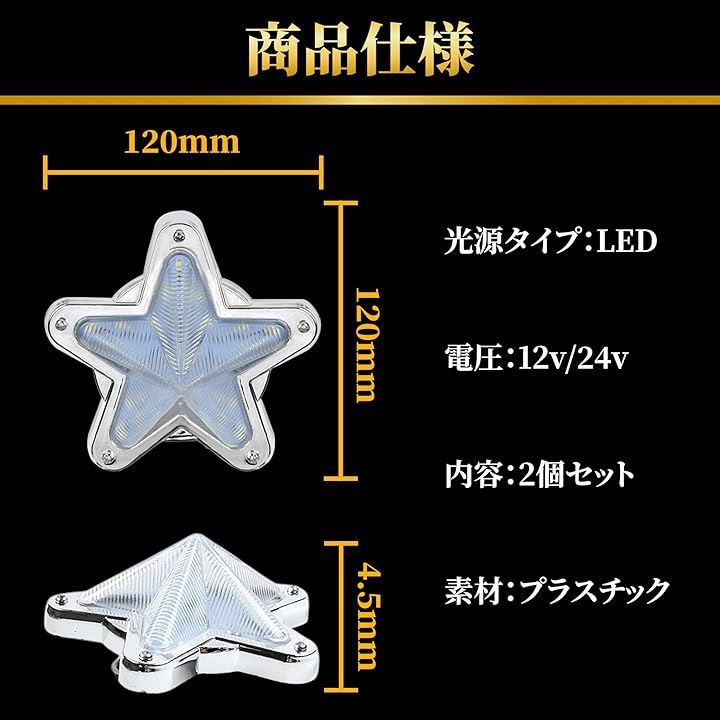 互換品星型 LED サイドマーカー 12V 24V 2個 セット ランプ デコトラ トラック レトロ 旧車 星形