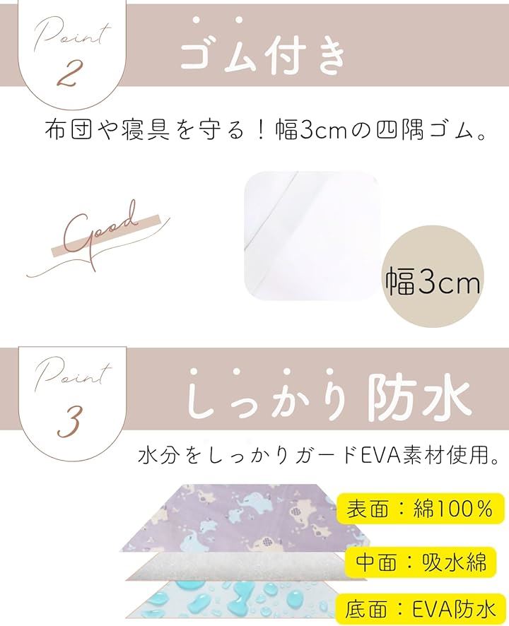 おねしょシーツ 防水シーツ ベビー 四隅ゴム付き 綿100% 保育園 介護 生理 ペット