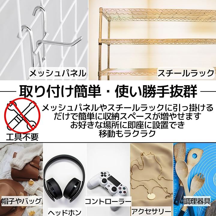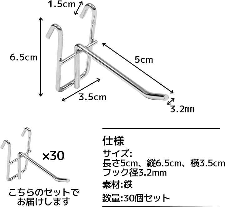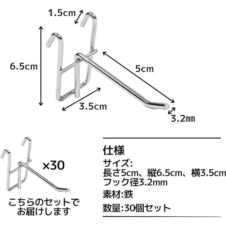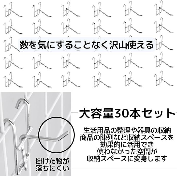 ワイヤーフック ネットフック 有孔ボード メッシュパネル 収納 展示 ディスプレイ 30本セット 50mm