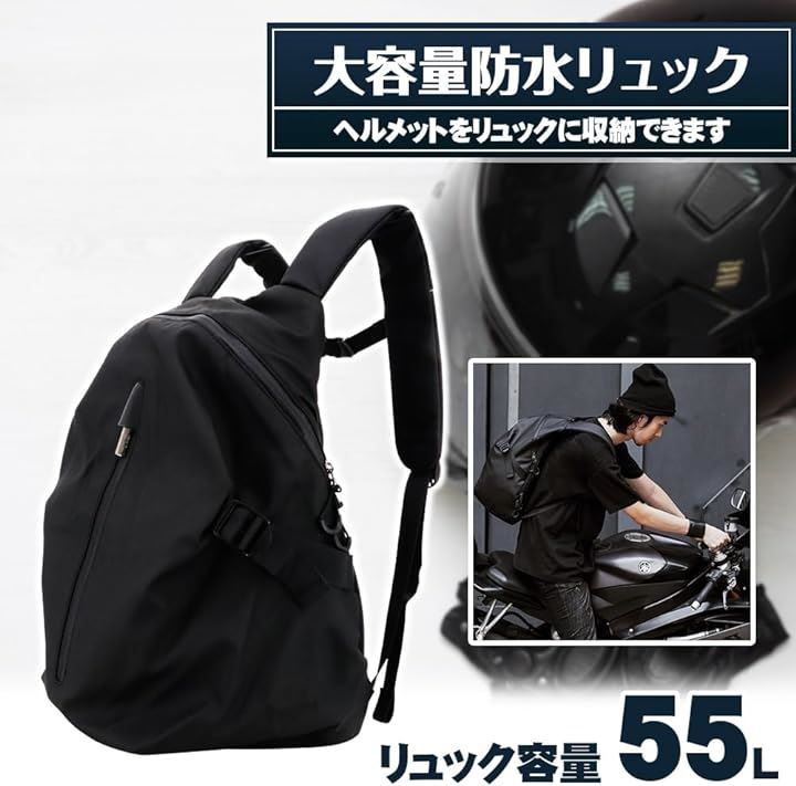 ヘルメットバッグ フルフェイス 防水性 アウトドア 多機能 メンズ レディース 55L ブラック