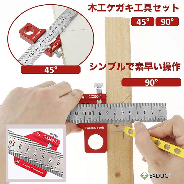 ケガキ 工具 マーキングゲージ 木工 金属 ケガキゲージ スコヤ マグネット付き 45度 60度 90度 位置決め
