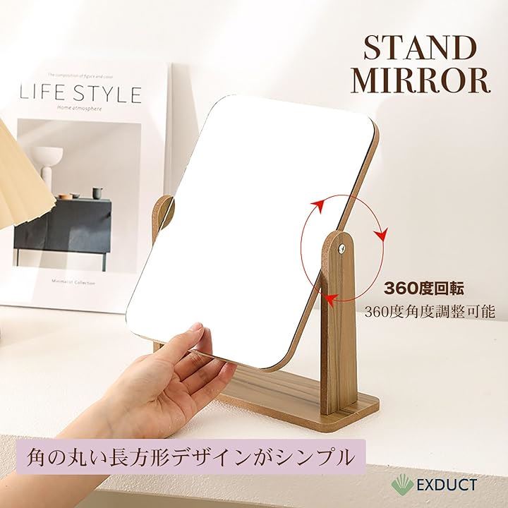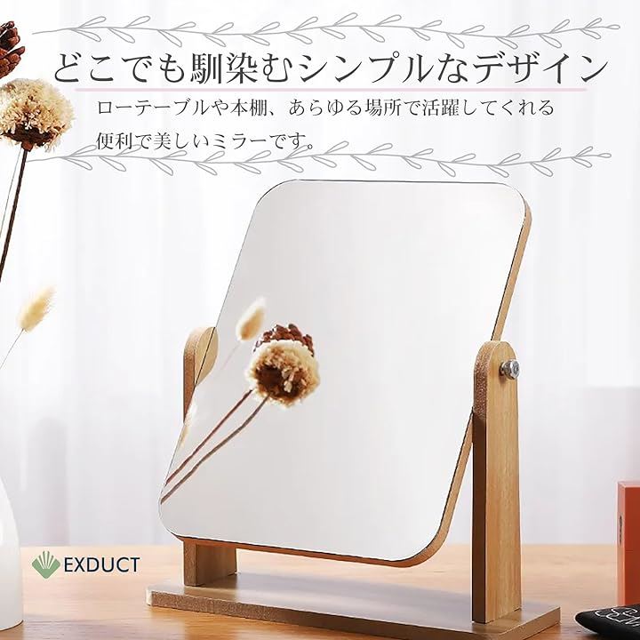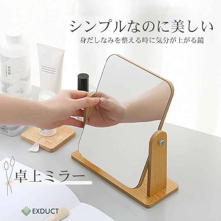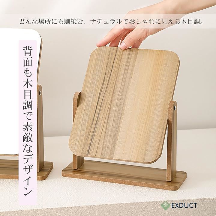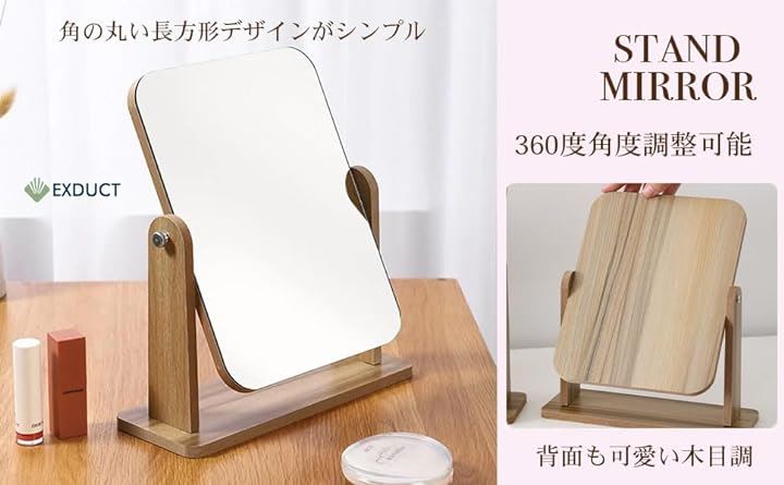 卓上ミラー 鏡 卓上鏡 置き鏡 スタンド 木製フレーム インテリア