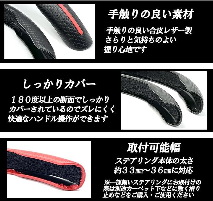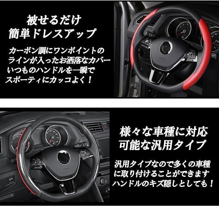 互換品ハンドルカバー 車用 ステアリング 汎用 カーボン ファイバー D型 分割式 グリップ