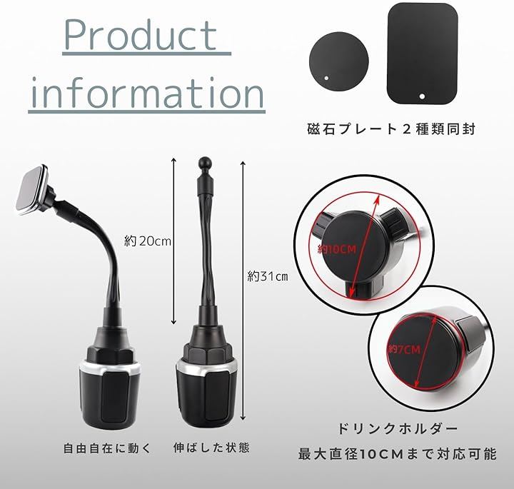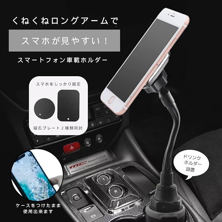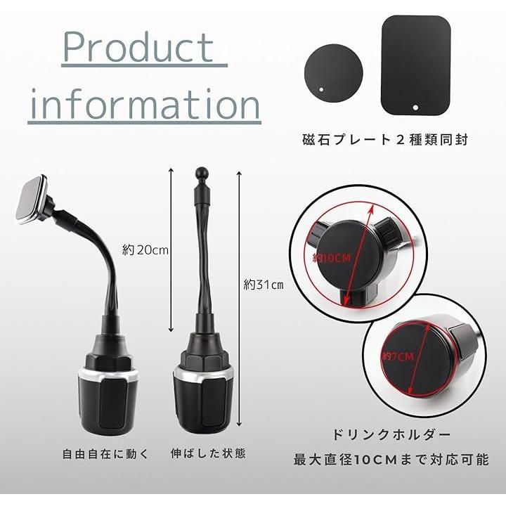 スマホホルダー 車 ドリンクホルダー 設置 磁石 車載ホルダー カップホルダー