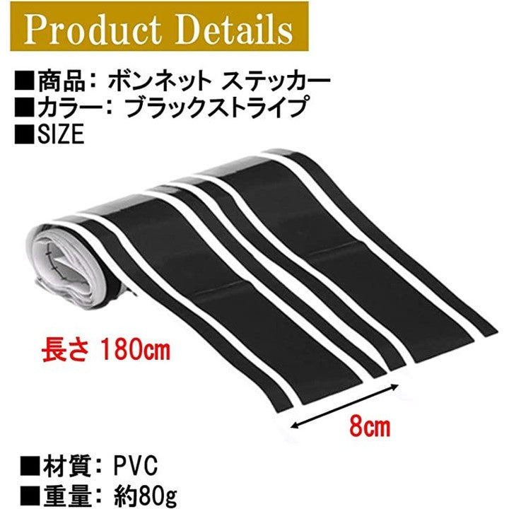 ボンネット ステッカー ストライプ ボディ 車 シール デカール 8x180cm