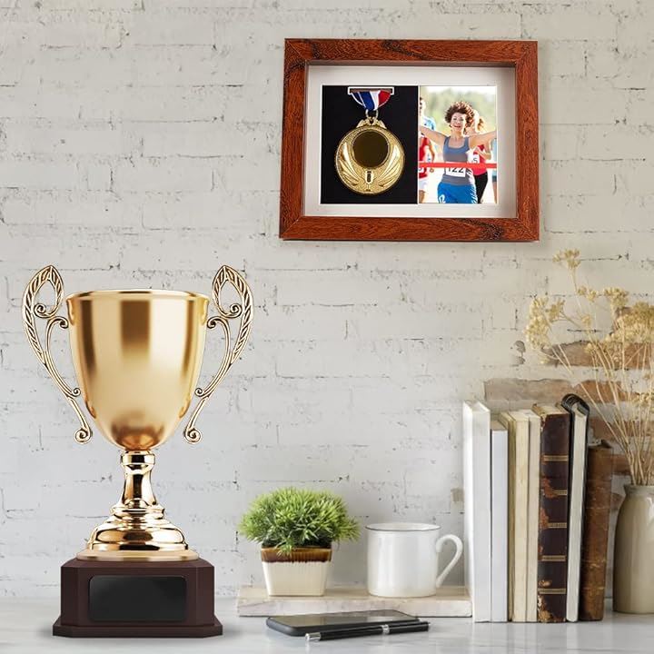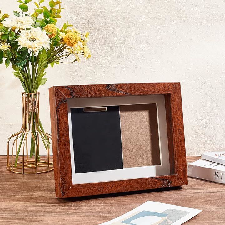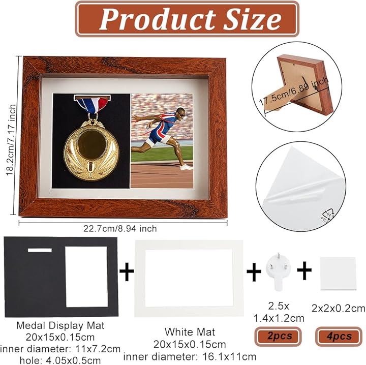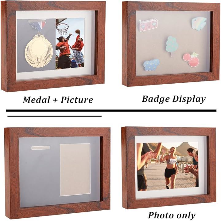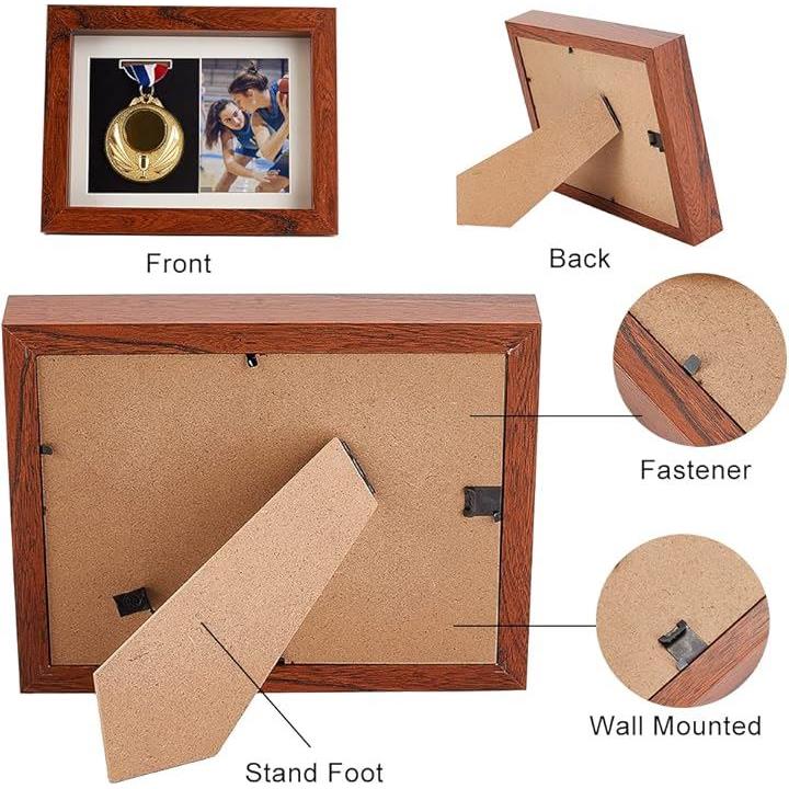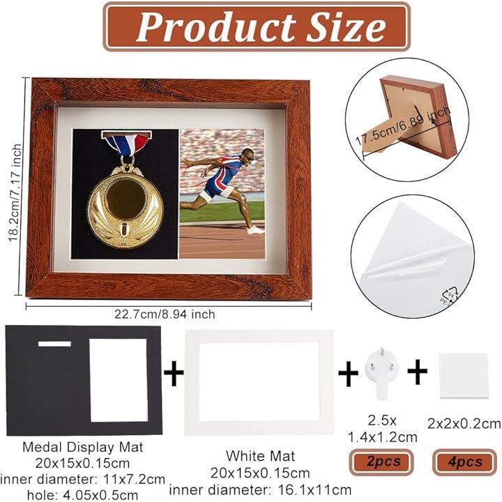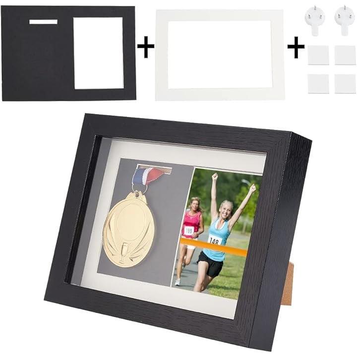 メダルディスプレイボックス フォトフレーム 木製写真フレーム 額縁 透明窓付き ミリタリー スポーツ ポストカード 227x182x175mm