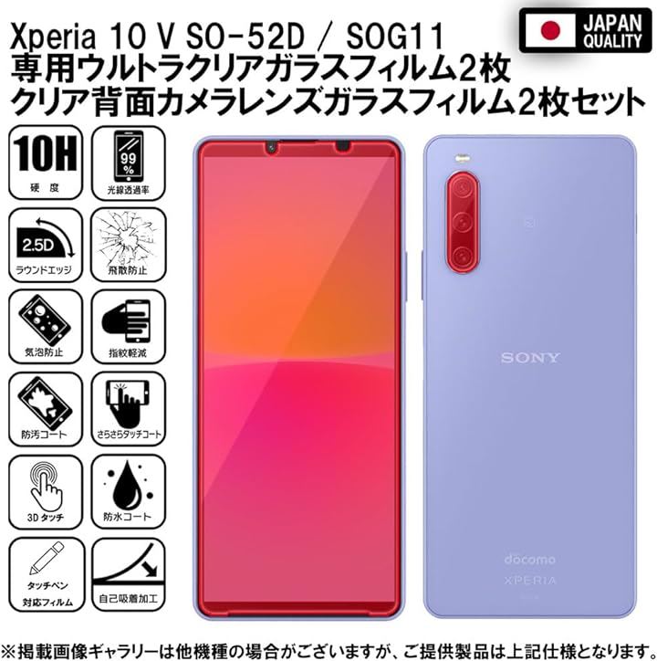 2枚+2枚 フィルム Xperia 10 V SO-52D / SOG11 ガラスフィルム カメラフィルム レンズフィルム レンズ保護ガラス レンズカバー 保護フィルム 強化 高透過 高光沢