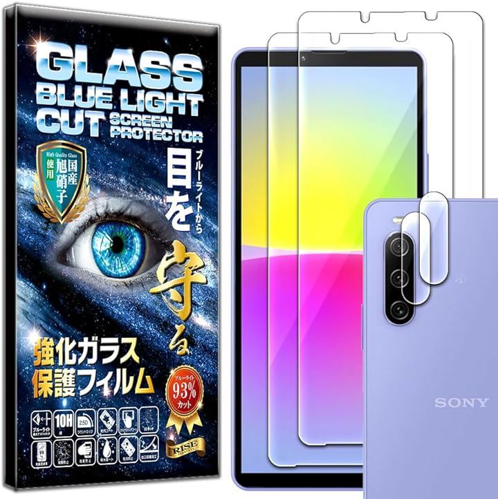 2枚+2枚 フィルム Xperia 10 V SO-52D / SOG11 ガラスフィルム ブルーライトカット カメラフィルム レンズフィルム レンズ保護ガラス レンズカバー 保護フィルム 強化