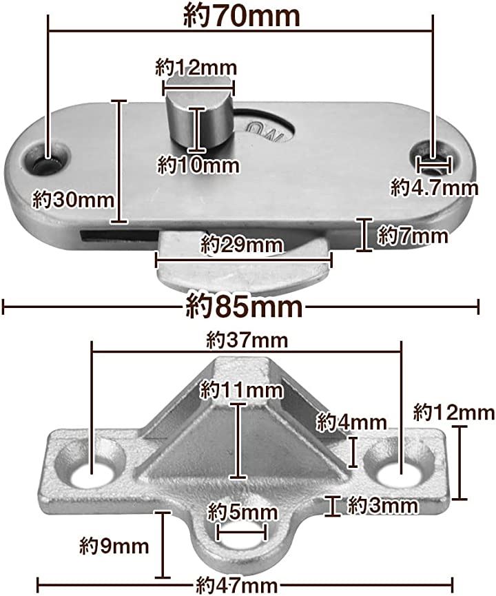 引き戸用ドアロック ステンレス製 直角 後付け スライドドア 納戸 浴室