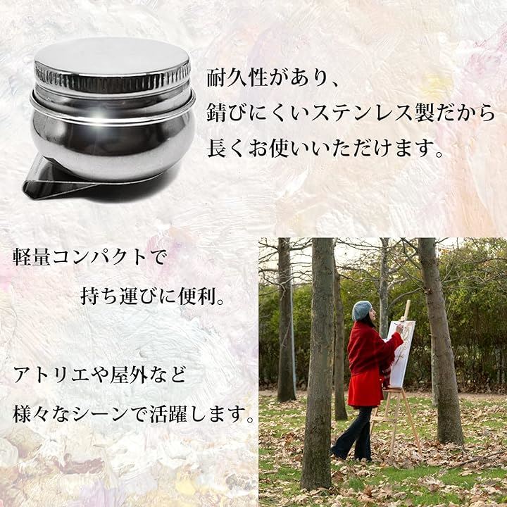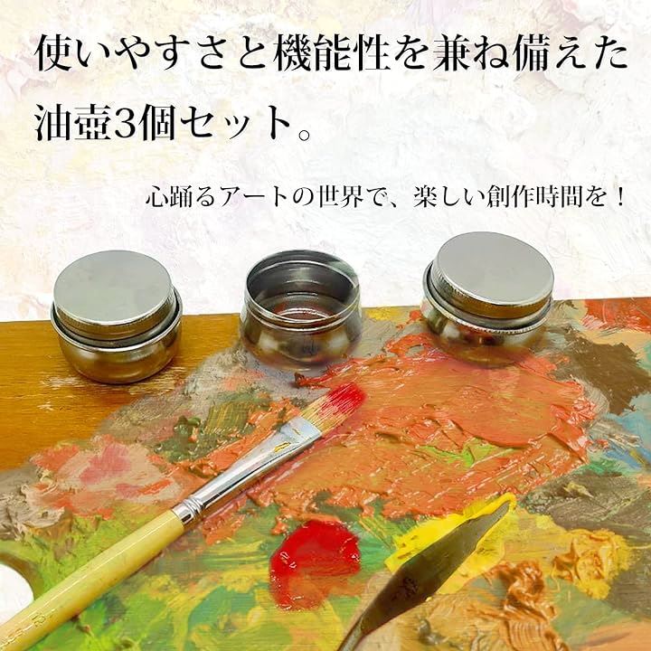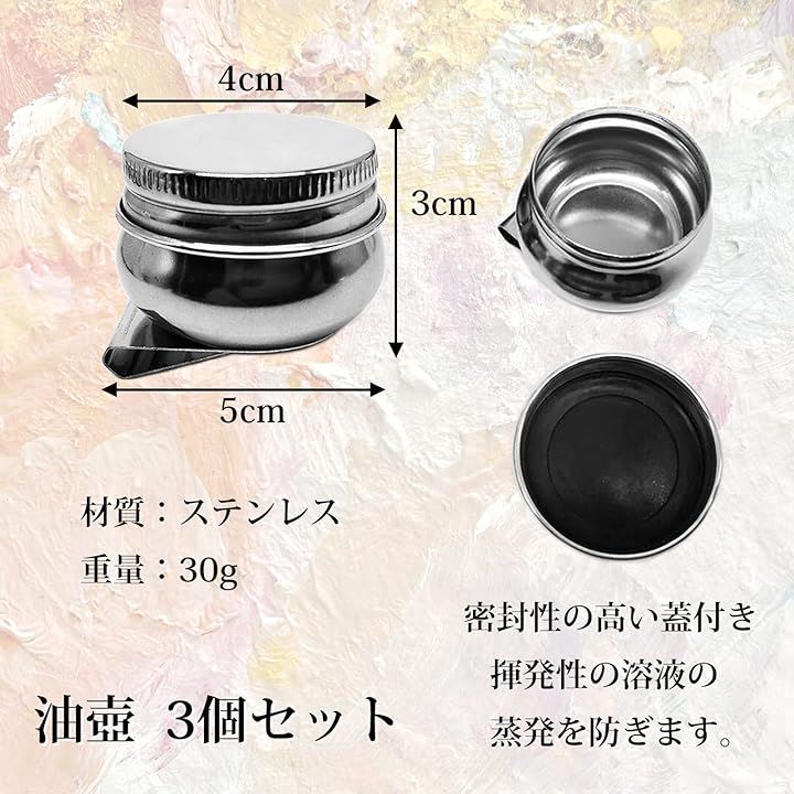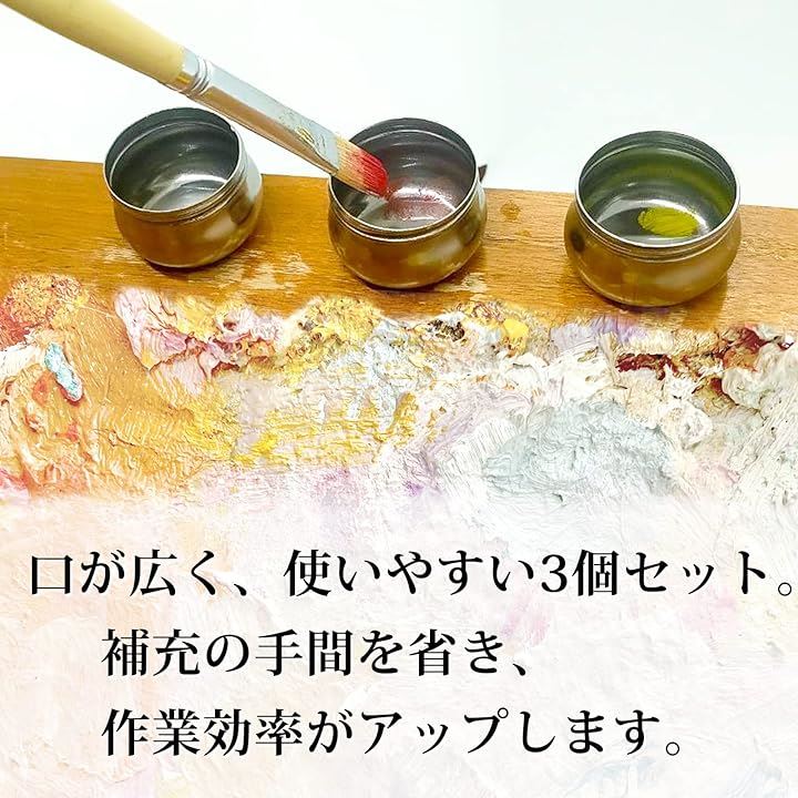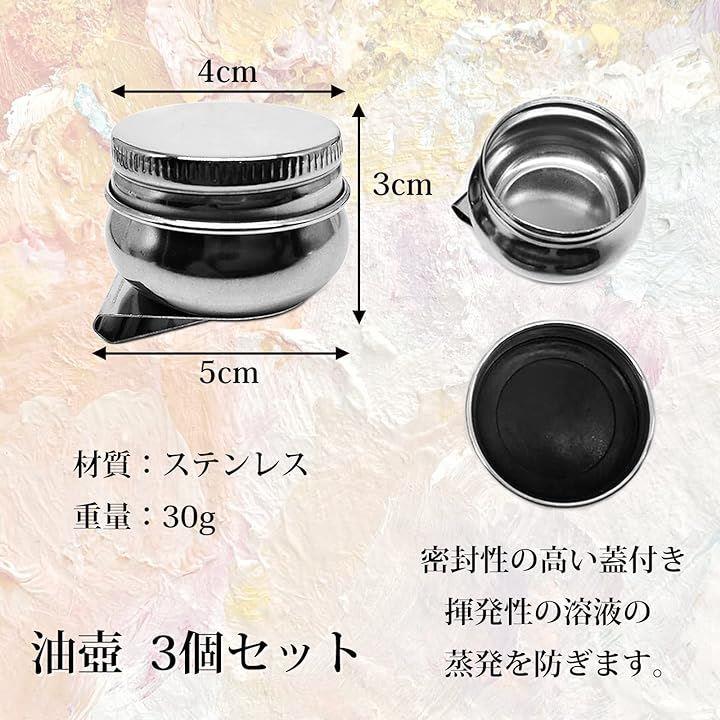 油壷 3個セット クリップ付き 蓋付き 油絵 油彩 画材 ステンレス 真鍮 筆洗器 油つぼ 漏れ防止